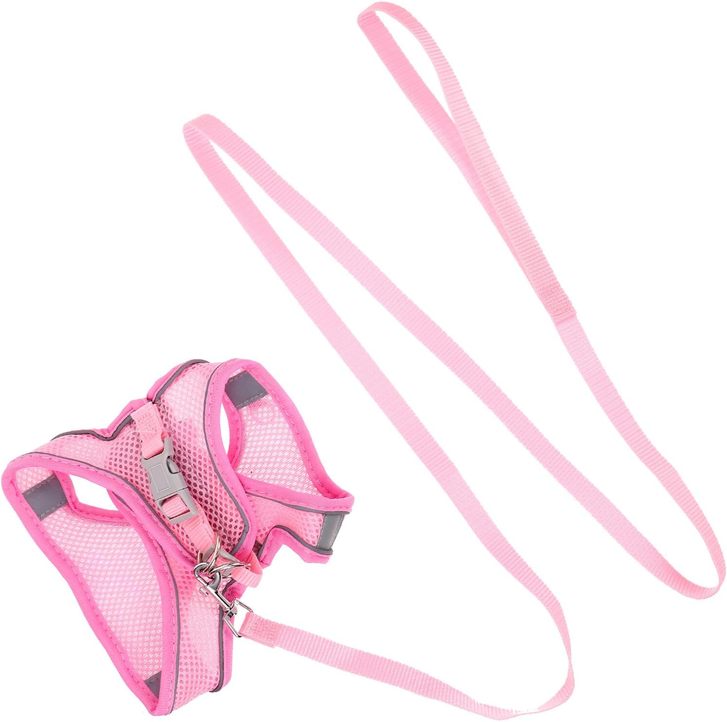 FRCOLOR Breathable Reflective Dog Harness with Leash Soft Mesh Pet Vest for Outdoor Walking One-Hand Operation Lightweight Style Pink S