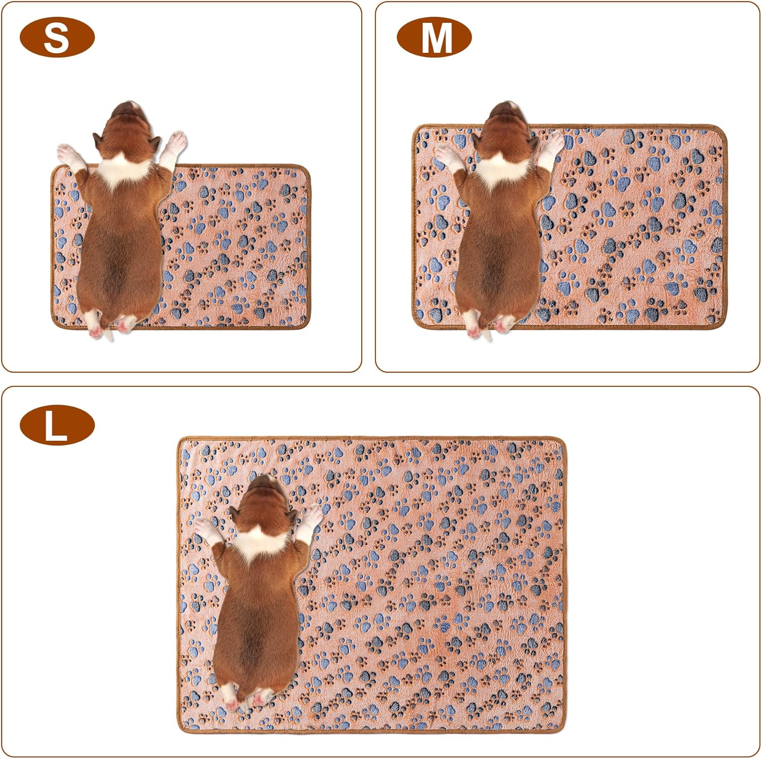 About this item 【Premium Quality Material】Our pet blanket is made of high-quality flannel fabric, providing a soft, lightweight, and gentle touch.Essential pet supplies! 【Three Sizes】The small/medium/large pet blankets contain 3 covers per pack. Small: 23" x16"(60*40cm) / Medium: 30"x20"(76*52cm) / Large: 41"x31" (104*76cm). 【Easy to Clean】100% machine washable & dryer safe. The blankets not only look elegant, it is also easy to clean and dry. It can be utilized as a cover or quilt for dogs, cats and other pets. 【Easy to Carry】The dog blankets are soft and lightweight. Our pet blanket is a suitable companion for outdoor activities. Keep your pets warm and cozy during sleeping in the outdoors. Excellent puppy essentials! 【Multipurpose Usage】Protect furniture from scratching and pet hair. Cute and lovely paw print design. No pilling, skin-friendly, perfect for the couch, sofa, bed and pet carrier. › See more product details