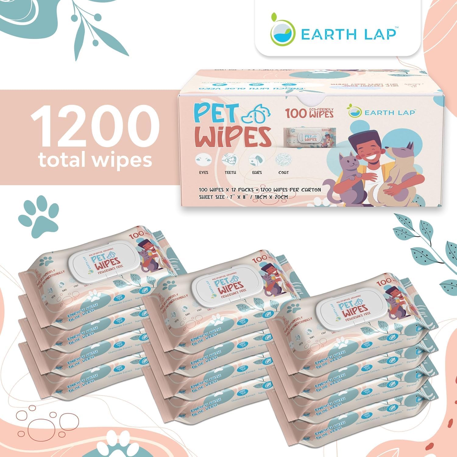 --Plant-based biodegradable dog wipes and cat wipes for safe, gentle cleaning. Perfect paw wipes and grooming wipes for puppies, kittens, and small pets. Eco-friendly daily hygiene solution. --Infused with aloe vera, chamomile, and vitamin E for mild cleansing and conditioning. Hypoallergenic, fragrance-free, alcohol-free pet wipes, safe for sensitive skin on dogs, cats, and rabbits. --Multipurpose pet wipes for dogs, puppies, cats, kittens, and other small pets. Removes dirt, dander, and odor for a fresh, soft coat. Ideal wipes for dogs between baths or outdoor adventures. --Compact resealable pack of 100 wet pet wipes, 7"x8", easy to carry for travel, dog park visits, or hikes. Keeps wipes moist and fresh for quick clean-ups anytime, anywhere. --No parabens, alcohol, sulfates, or harsh chemicals. Gentle puppy wipes and kitten wipes for everyday use on paws, fur, and face. Maintain your pet’s hygiene with confidence and peace of mind. › See more product details