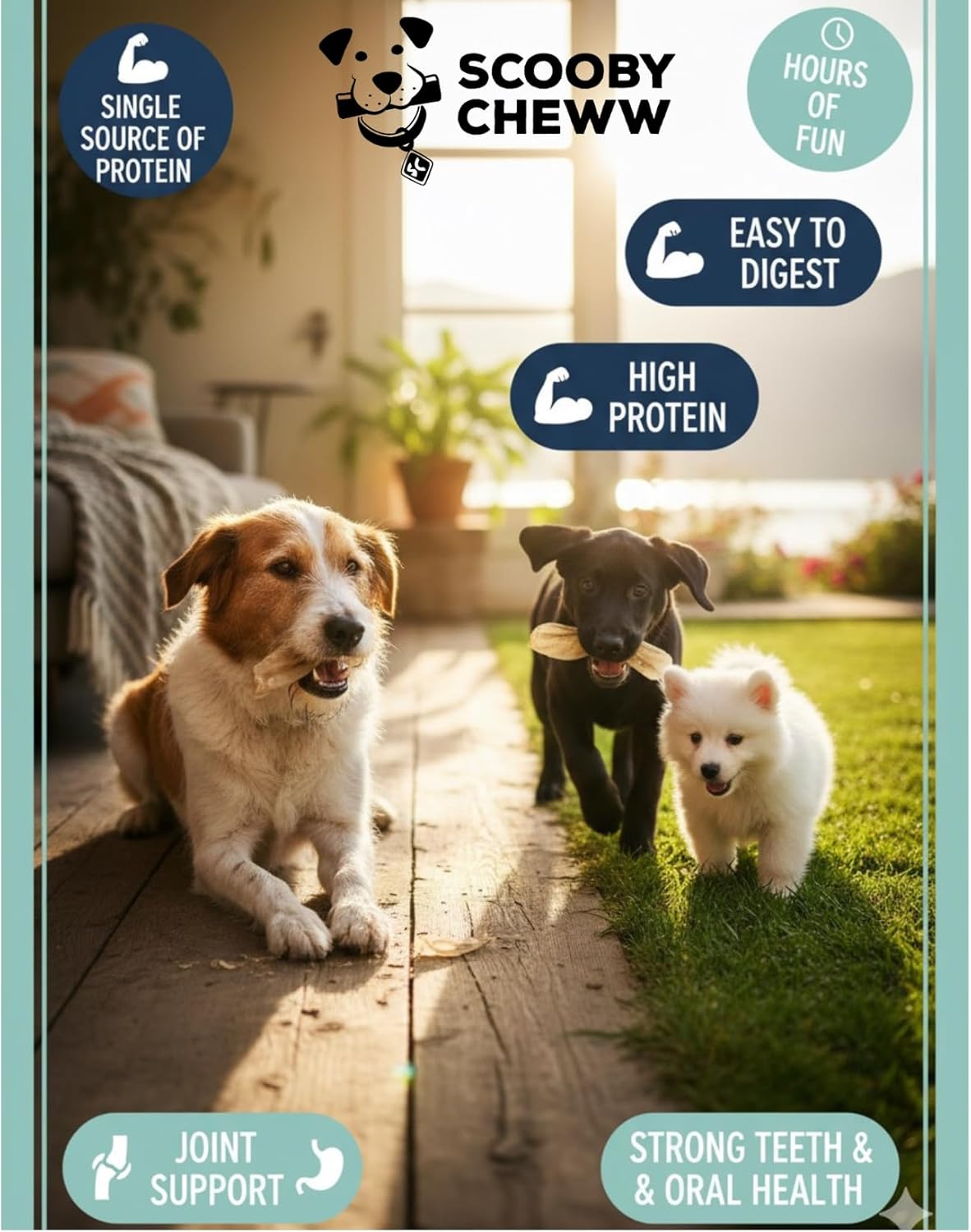 About this item 100% Natural & Rawhide-Free: Made from 100% natural, unbleached, grass-fed water buffalo ears, these dog chews are rawhide-free and provide a safe, healthy alternative to processed treats. High in Crude Protein: Packed with high-quality crude protein to support muscle development and overall health, making it a nutritious and satisfying treat for your furry companion. Single Ingredient, No Additives: Contains only a single ingredient with no artificial additives, preservatives, or chemicals, ensuring a pure and healthy treat your dog will love. Long-Lasting Chew Treat: Perfect for medium to small dogs, these chews keep your pet engaged and entertained while promoting dental health by reducing tartar and plaque buildup. 12 Count Value Pack: Each pack includes 12 long-lasting chews, making it an economical choice for dog owners who want to provide premium, high-quality treats for their pets. › See more product details