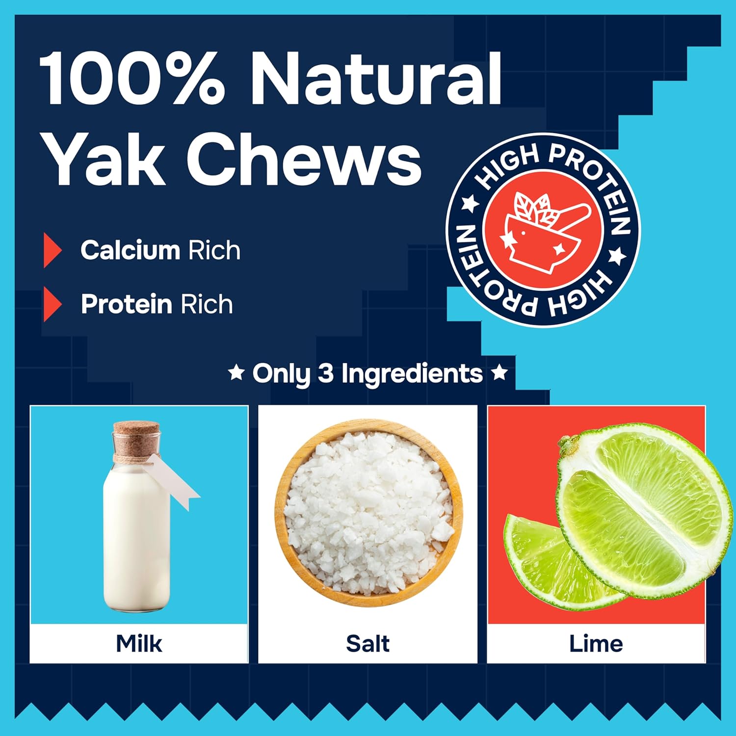 Discover the Ultimate Chew Experience with Our Yak Cheese Himalayan Made Dog Chews Delight your furry friend with the finest Yak Chews for Large Dogs, crafted from 100% natural yak cheese sourced directly from the pristine Himalayas. Our Natural Yak Cheese Dog Chews are designed to provide your dog not just with a treat, but with a healthful chewing experience that supports dental health and overall well-being. Why Choose Our Himalayan Made Dog Chews? Superior Quality: Each chew is made using traditional Himalayan techniques, ensuring that your dog enjoys nothing but the pure, unaltered goodness of Himalayan Yak Cheese Dog Chew. Health Benefits: Our chews are more than just treats. They are a dental care solution that helps clean your dog's teeth with every bite. The hard texture of our Dog Chew Treats Long Lasting formula reduces plaque and tartar buildup, ensuring that your pet maintains a healthy smile. Ethical and Sustainable: Embrace the power of ethical choices with our Yak Cheese Dog Chews. Produced by local farmers in the Himalayas, every purchase supports sustainable practices that benefit not only pets but also the planet. Perfect for Every Dog: Whether you've got a gentle giant or a petite pup, our product line includes Yak Chews for Medium Dogs, Yak Chews for Small Dogs, and Yak Cheese Himalayan Made Dog Chews Large. There's a perfect size for every dog, ensuring a safe and enjoyable chewing session. Long-Lasting Entertainment: Keep your dog engaged and entertained for hours. Our Dog Chews for Aggressive Chewers are specially designed to withstand the toughest chewers, offering a lasting challenge that keeps your dog away from shoes and furniture. With Naturals Yak Cheese Dog Chews, you are not just giving your dog a treat; you are providing a gateway to a healthier, happier life. Our chews are free from any preservatives, chemicals, and additives. The only ingredient? Milk, Salt, Lime — nothing else!