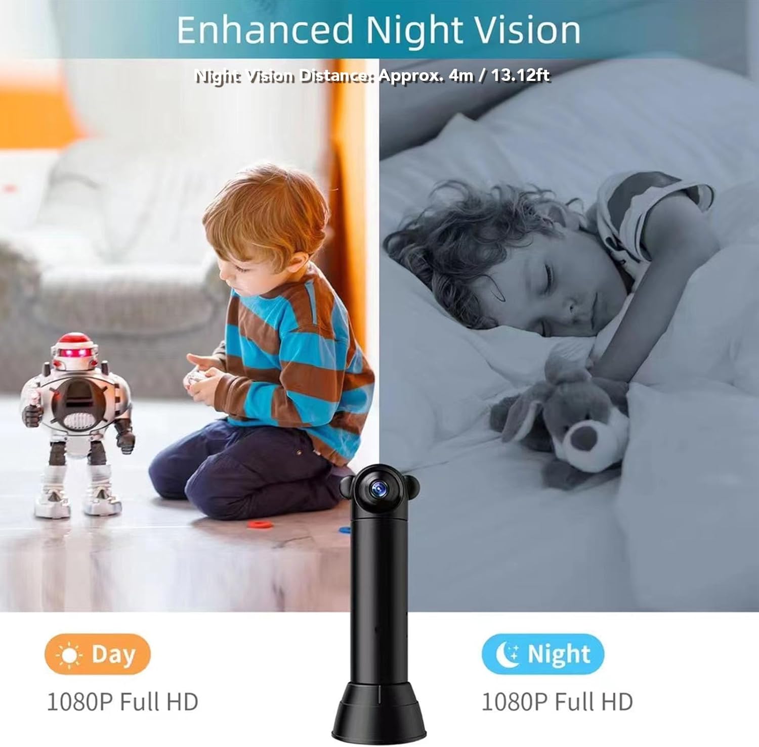 Product Description:The 1080P camera delivers clear, high definition video for both indoor and outdoor use. This indoor security camera features night vision up to 4 meters, motion detection alerts, and two way talk for instant communication with family or pets. Built in AP hotspot allows continuous recording even without network access.Item Type: 1080P Indoor Security CameraMaterial: ABSColor: BlackResolution: 1080PLens Angle: 100 DegreeLens Rotation: 180 DegreeNight Vision Distance: Approx. 4m / 13.12ftAP Hotspot: Built in AP HotspotApp: for iWFCamStorage: Supports up to 32GB Memory Card (Not Included)Package List:1 x 1080P Indoor Security Camera 1 x Stand1 x Adhesive1 x Pin1 x USB Cable1 x Manual