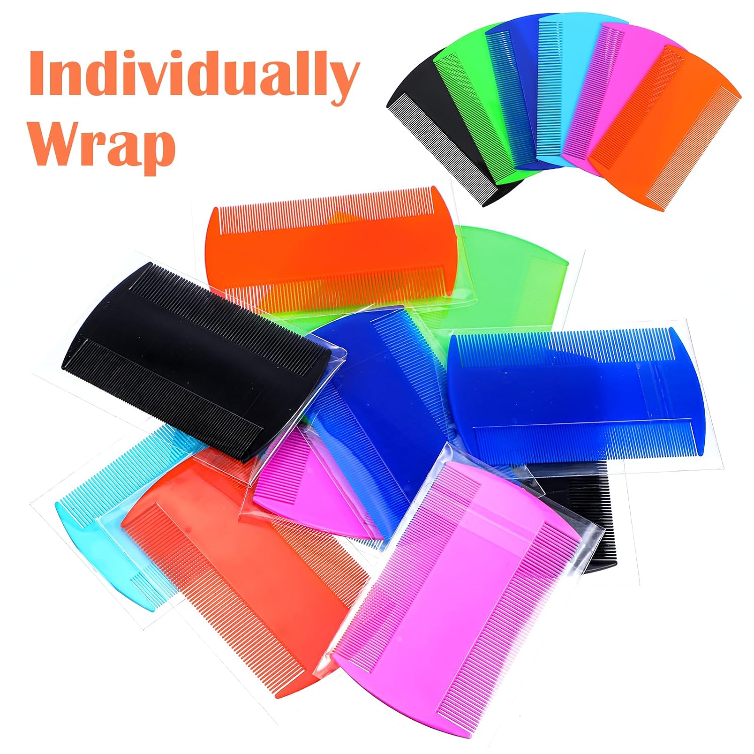 Widely Use: This flea and tick comb is easy to use and can effectively remove fleas, ticks, and other parasites from your pet's fur without causing any discomfort; The fine teeth are gentle on your pet's skin and coat, making it a practical tool for regular groomingUseful and Practical: The flea comb is made of sturdy plastic that can withstand regular use; This means that you can use it for an extended period of time without worrying about it breaking or wearing out; Made with fine teeth and double sided design, smooth edges to prevent scratching the skin, won't cause discomfort to your pet, and can keep the coat neat and trimmed in just minutesSpecifications:Material: PPColor: pink, orange, blue, dark blue, green and blackSize: about 3.5 x 2 x0.15 inchesPackage includes:120 x Plastic Flea Lice CombsNotes:Manual measurement, please allow slight errors on size.The color may exist a slight difference due to different screen displays.