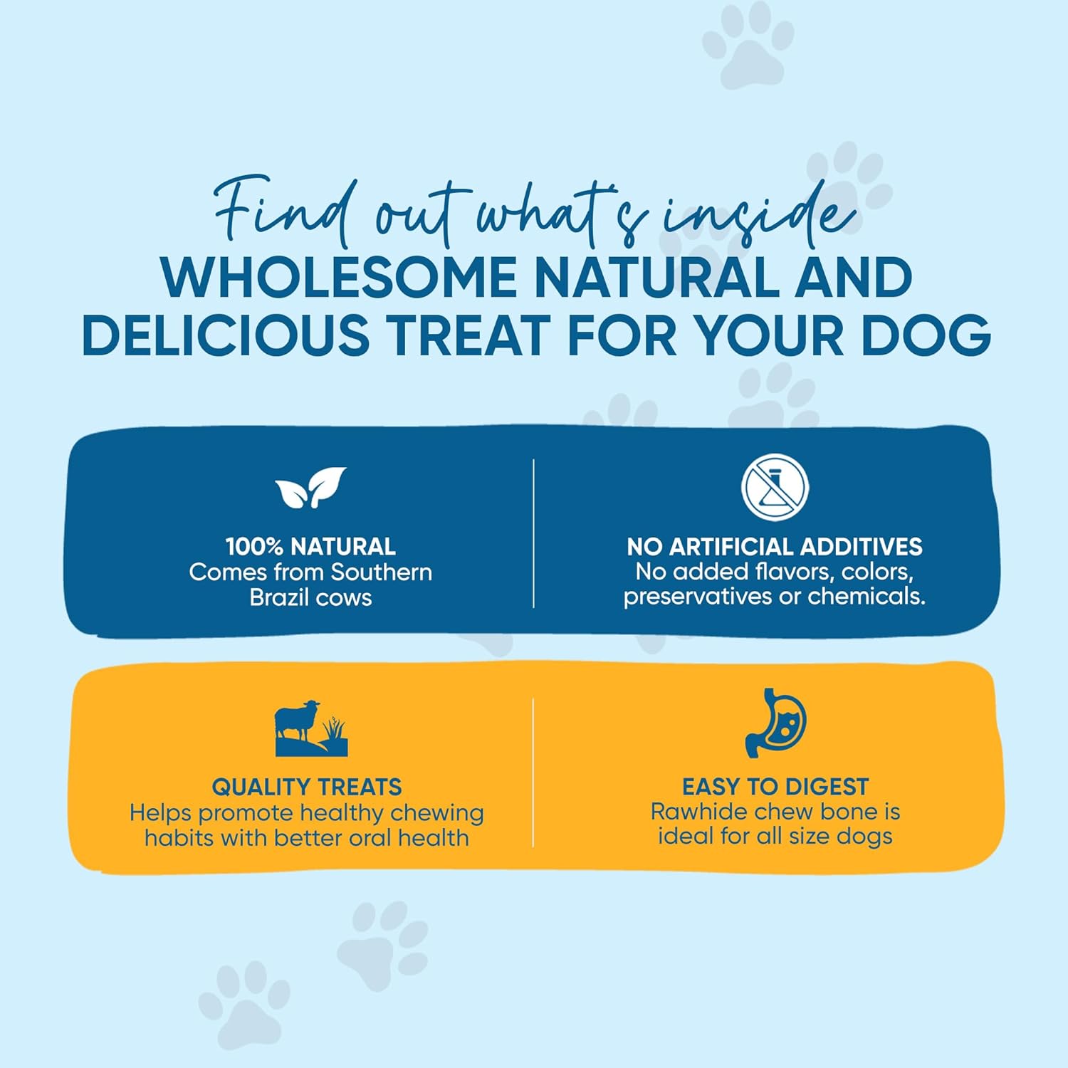 About this item ๐๐๐ญ๐ฎ๐ซ๐๐ฅ ๐๐ง๐ ๐๐๐๐: Our rawhide bones for dogs are made from natural rawhide, sourced from Brazilโs finest cattle. These rawhide chews are free from artificial flavors, and preservatives, ensuring a safe and healthy treat for your furry friend. Ideal for dogs of all sizes, our digestible rawhide bones provide wholesome chewing satisfaction. ๐ข๐๐๐๐ฅ ๐๐ข๐ณ๐ ๐๐จ๐ซ ๐๐ฅ๐ฅ ๐๐จ๐ ๐ฌ: Whether you have a small, medium, or large dog, our rawhide bones come in the ideal size to suit their needs. With options for rawhide bones for large dogs and rawhide bones for small dogs, these bones are designed to be durable and long-lasting, providing a suitable treat for dogs of any size and breed. ๐๐จ๐ง๐ -๐๐๐ฌ๐ญ๐ข๐ง๐ ๐๐ง๐ญ๐๐ซ๐ญ๐๐ข๐ง๐ฆ๐๐ง๐ญ: Our rawhide dog chews are made to offer hours of engaging and enjoyable chewing for your pet. The tough, durable nature of these rawhide dog bones makes them ideal for satisfying natural chewing instincts while keeping your dog entertained. Ideal for heavy chewers, these promote healthy stimulation. ๐๐ฎ๐ฉ๐ฉ๐จ๐ซ๐ญ๐ฌ ๐๐๐ง๐ญ๐๐ฅ ๐๐๐๐ฅ๐ญ๐ก: Chewing on our rawhide bones help maintain your petโs dental hygiene by reducing tartar buildup and plaque formation. The gnawing action from these rawhide chews massages your dogโs gums, promoting healthier teeth. These rawhide bones for medium dogs are ideal for keeping your dogโs mouth clean and fresh. ๐๐ฎ๐ฌ๐ญ๐จ๐ฆ๐๐ซ ๐๐๐ญ๐ข๐ฌ๐๐๐๐ญ๐ข๐จ๐ง: Our rawhide dog bones have been loved by pet owners for their quality, safety, and durability. Whether you need rawhide bones for large dogs or rawhide chews for small dogs, our rawhide bones are designed to meet your expectations. Treat your dog to a safe and wholesome chew theyโll love. โบ See more product details