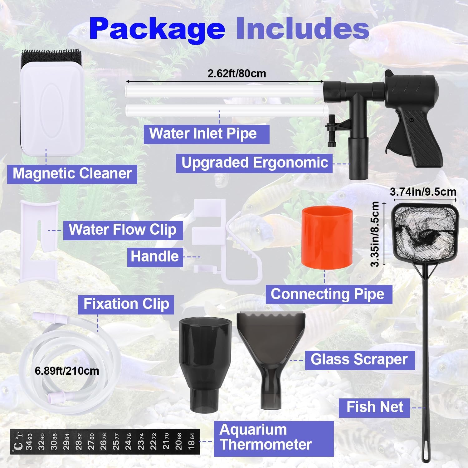 Specification: Color: black, white, transparent Material: ABS, beef tendon tube, paper Product Size: as shown in the picture Package details: 1 set of fish tank cleaner kit Note: Due to manual measurement, the size and weight may have a certain error. Due to the difference between different monitors, there may be a slight color difference existed.