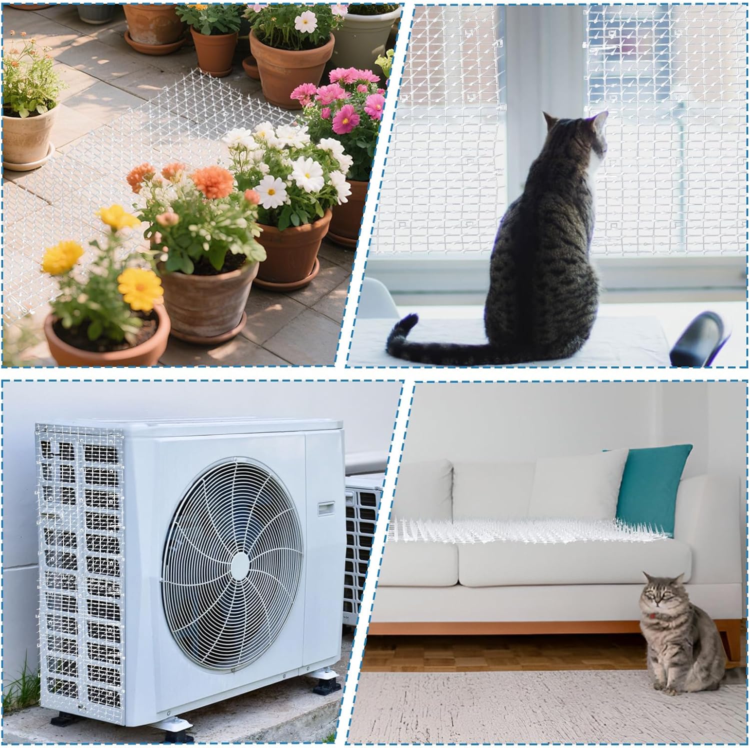 ----------------- WELCOME TO OUR SHOP -----------------Packing List: 1 x Mat with spikes for cat dog, 12 x U-shaped pegs, 12 x Cable tiesSpecificationSize: 158 x 12 inches/ 400 x 30 cmColor: WhiteMaterial: Polypropylene