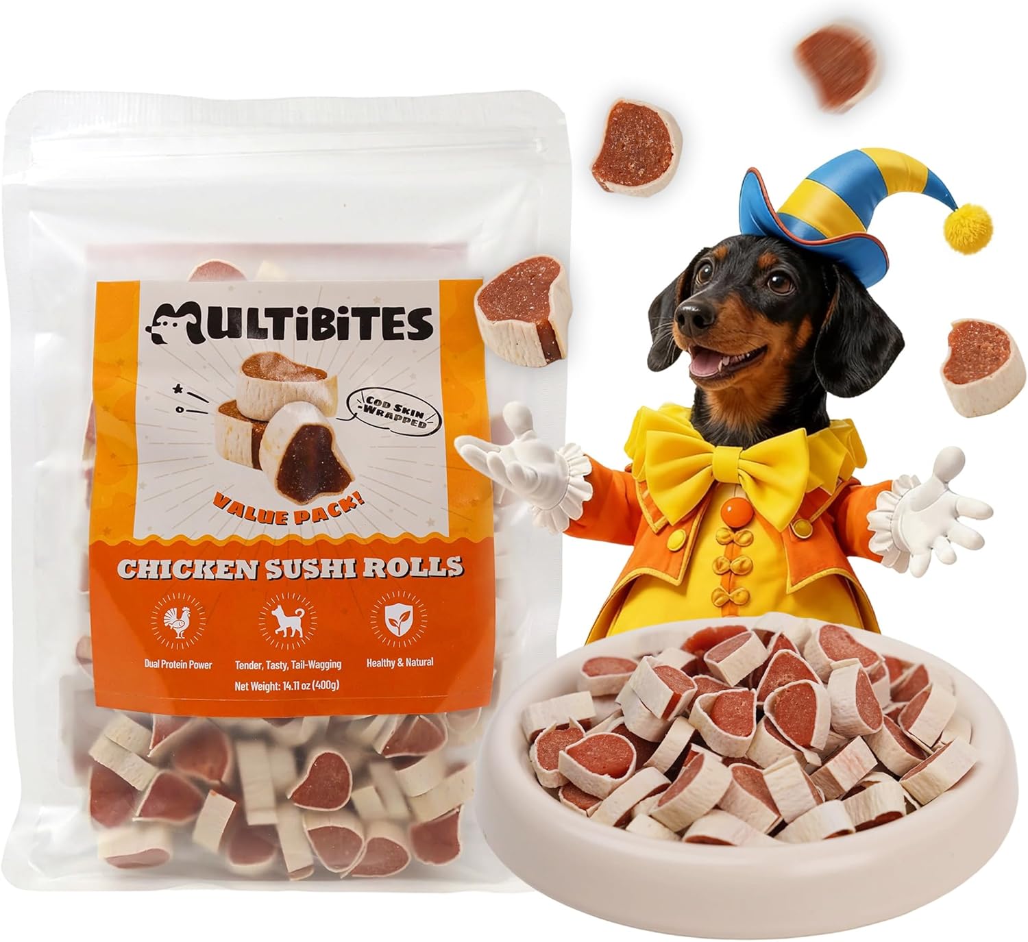 These adorable chicken dog snacks offer the best of both worlds: nutrition and fun. This natural dog treats is made with high-protein chicken and omega-rich cod skin, they provide a wholesome, low-fat snack. Their small, soft size is perfect for training rewards and is gentle enough for dogs of all ages and breeds, especially those who prefer soft foods. With no artificial additives, ensure your dog enjoys a delicious and safe snack, giving you complete peace of mind while strengthening your bond.