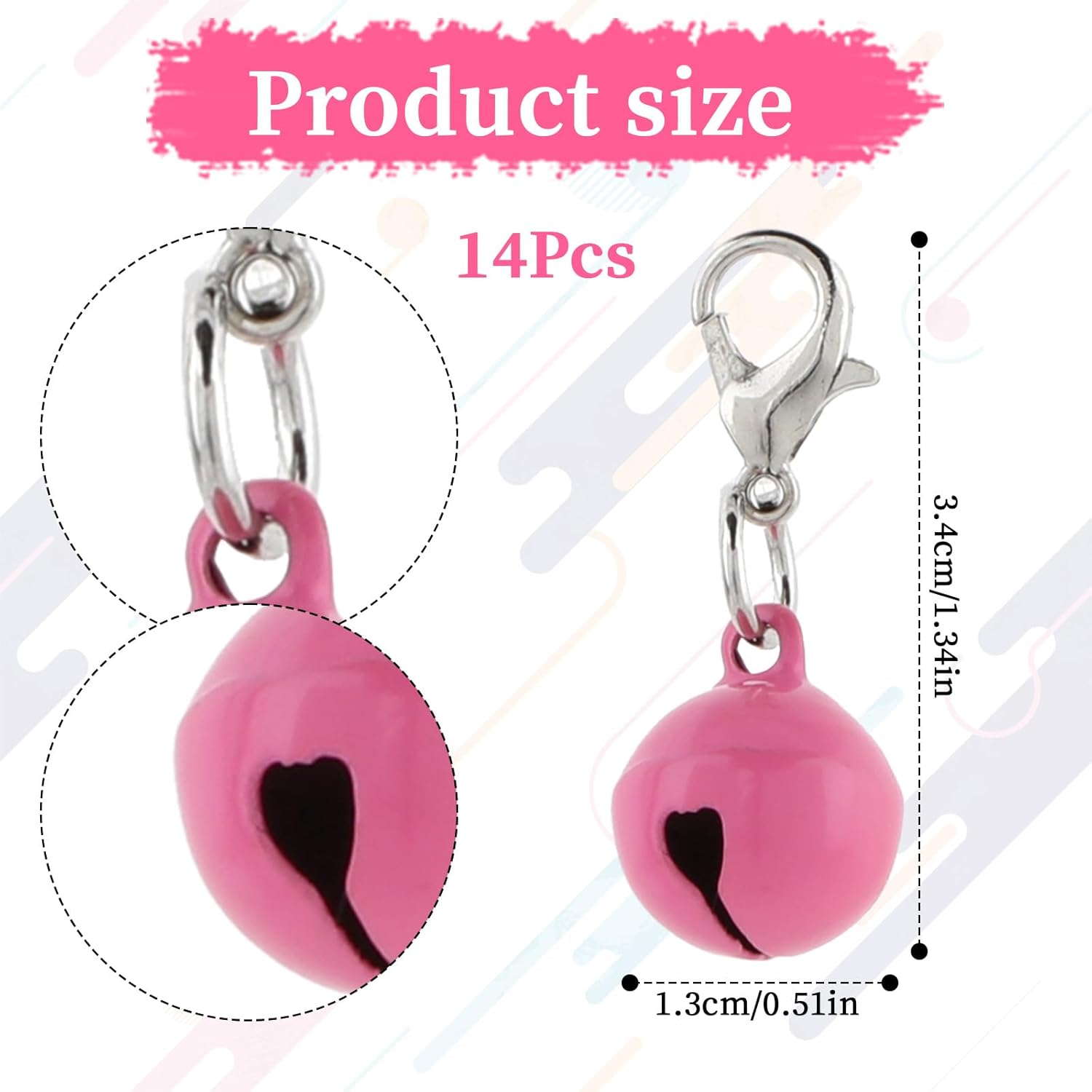 What You Get: The set includes 14 pcs pet collar bells, each with a handy lobster clasp. Ample quantity ensures you have enough bells for all your daily decorating needs, whether for your pet or other creative uses around the house. Material Durable: Our dog bells are made of quality metal, sturdy and durable, smooth surface, not easy to wear out or break, the bells' crisp sound is suitable for attracting your pet's attention and adding a touch of fun to their daily life. Rich Colors: our dog collar bells come in 14 colors, the rich selection of colors allows you to mix and match bells to create unique and eye-catching combinations for your cat or dog's collar. Practical Design: These bells for cat&dog collars not only enhance your pet's appearance and make him or her stand out in any occasion, but also add a stylish and unique touch that is sure to catch everyone's attention. Multipurpose: These cat collar bells are not only a charming accessory for your pet's collar, but also a lovely accent for home decor. The easy to use lobster clasp allows you to easily hang the little bells on key rings, backpacks and home decorations › See more product details