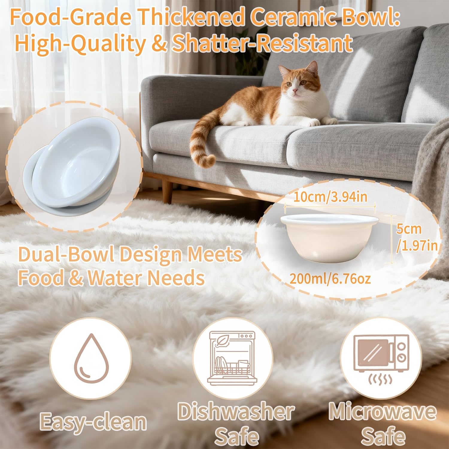 Transform Your Pet's Mealtime into a Healthier, Happier Experience!Is your furry friend experiencing digestive issues during meals? The 15° Tilted Elevated Cat Feeder is thoughtfully designed to address these common issues. By combining ergonomics with premium, easy-clean materials, we've created a feeding station that cares for your pet's well-being as much as you do.KEY BENEFITS AT A GLANCECeramic Bowls for Hygiene & SafetyCrafted from smooth, high-density ceramic, our bowls maintain their pristine surface through daily use. The non-porous material offers exceptional cleaning convenience - simply place them in the dishwasher after meals. Made with food-grade safety standards, they help maintain your cat's health and hygiene with every use.Tilted Design for Smoother EatingThe fixed 15-degree angle is the sweet spot for encouraging food to move comfortably toward the stomach. This reduces gulping, improves swallowing ease, and helps prevent regurgitation, especially beneficial for cats prone to vomiting.Fixed Elevated Height for Posture SupportNo more straining! The raised platform brings the food to your pet, eliminating the need to bend down uncomfortably to the floor. This promotes a aligned spine and neck position, making meals more enjoyable, particularly for older pets or those with joint sensitivity.Stylish and Robust Wooden ConstructionWe believe pet products should enhance your home. The solid rubberwood base is not only tough and stable but also features a beautiful natural finish that resists water damage and everyday wear, ensuring it looks great for years to come.The Practical Two-Bowl SolutionFlexibility for the win! Easily manage different diets, separate food and water, or simply ensure your pet always has access to both. The thoughtful design keeps their dining area neat and tidy.WHAT YOU GET- 2x High-Quality Ceramic Bowls (Dishwasher & Microwave Safe)- 1x Solid Rubberwood Stand with Waterproof Finish- Our 100% Satisfaction Guarantee