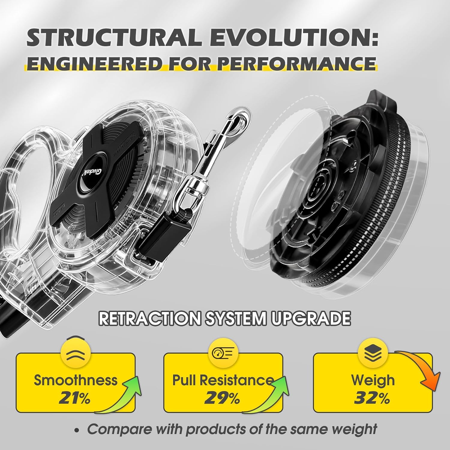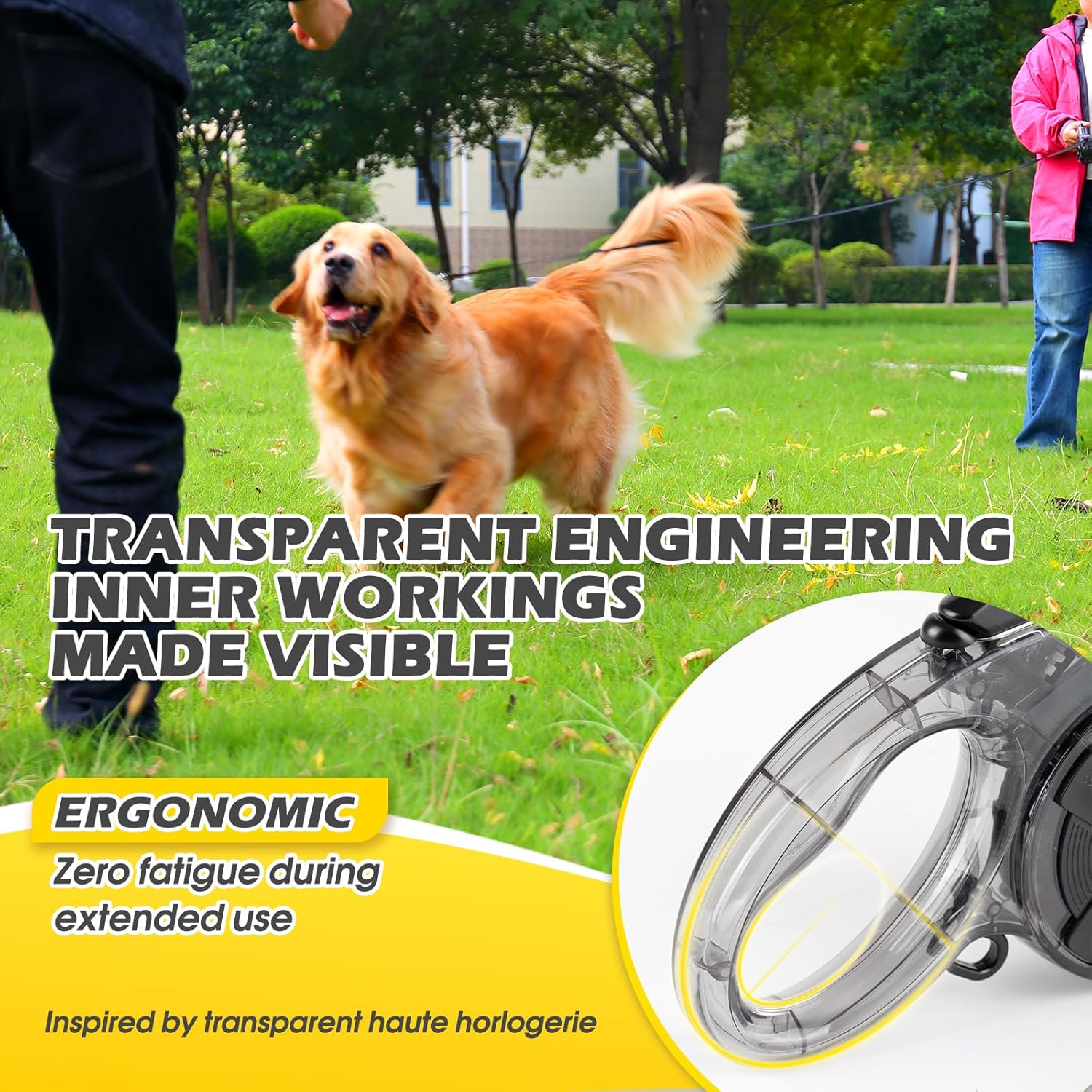 About this item Smooth & Lightweight: Enjoy silky-smooth retraction with upgraded gears — 30% lighter than standard leashes to prevents leash arm on long walks or hikes One-Tap Control: Instantly secure your pup’s range with an easy-press thumb lock. Ideal for sudden squirrels or busy sidewalks—one-touch control Safe Day & Night: 16ft reflective nylon tape with 360-degree tangle-free design keeps walks stress-free, even after dark Modern Durability: Shatterproof transparent casing combines strength with standout style 25 Years Trusted: Pet experts perfecting safe, comfortable walks for over 25 years › See more product details