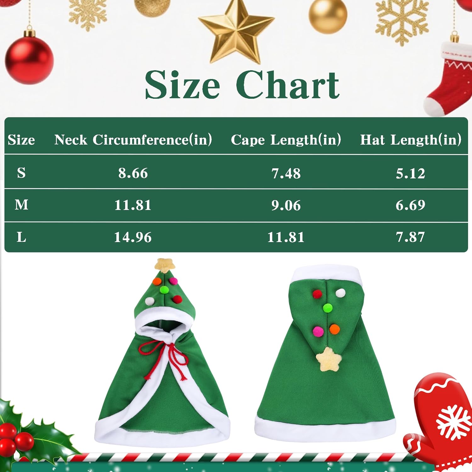 About this item Festive Christmas Design: This charming pet Christmas costume features a green cloak adorned with a decorative star and matching pompoms hat, creating a perfect holiday look for your cat or small breed dog. The complete ensemble transforms your pet into a festive celebration centerpiece ideal for Christmas photos, family gatherings and holiday parties Soft Comfortable Material: Crafted from polyester fabric, this green soft cloak ensures your pet remains comfortable and content throughout wear. The material feels gentle against your pets skin without causing irritation, making this Christmas costume suitable for extended use during holiday events and photo sessions Perfect Size Proportion: Designed specifically for small breed dogs and cats, this pets Christmas costume features precise measurements, including an 11.81 inch neck circumference, 9.06 inch cape length and 6.69 inch hat length. These dimensions ensure optimal fit and freedom of movement while maintaining the costumes elegant appearance on your pet Complete Costume Set: This comprehensive pet attire includes both the star decorated Christmas cape and matching pompoms hat, providing a fully coordinated holiday look. The ensemble creates an adorable unified appearance that captures the Christmas spirit while ensuring all components work together harmoniously for maximum visual impact Secure and Comfortable Fit: The Christmas cape features a red drawstring at the neck that can be tied to ensure a secure fit without restricting your pet's movement, while keeping the hood comfortably in place. This design allows cats or small dogs to wear the outfit naturally without frequent adjustments, letting them enjoy the festive spirit while staying relaxed and comfortable. › See more product details