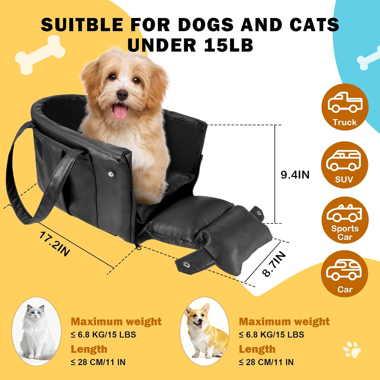 About this item : This dog car seat is made from high-quality leather, which is wear-resistant and scratch-resistant, and very durable. The interior is filled with pp foam to enhance cushioning. The adjustable lock on the back and the reserved seat belt position can firmly fix this pet car booster seat to the car seat, improving the safety of the dog during car driving. : This dog car bed is suitable for various vehicles such as cars, trucks, and SUVs. It can be conveniently installed in the front or back seat of the vehicle, comfortably accommodating medium and small-sized dogs. Product size: 17.2 x 8.7 x 9.4 inches. : When you go out, this pet booster seat can not only be used as a car seat for your dog, but also as a fashionable portable pet bag. You can carry it by hand or on one shoulder. Its wide shoulder strap is made of high-quality nylon, which won't pinch your hands or shoulders. The length can be adjusted to reduce your burden and make it easy to take your pet anywhere. At home, This pet seat can serve as a comfortable dog bed. : This dog seat has a pocket design on the side, providing ample space to store the pet's daily necessities. The high-quality artificial leather surface allows for quick and easy cleaning - just wipe with a damp cloth or remove the cover for a quick machine wash, and it is not easy to stick to pet hair. : AOOTOOLINK pet seats come in a variety of high-end color schemes, including solid colors and two-color combinations. They are suitable for your dogs of all styles and perfectly match your car interior, bringing a different kind of comfort and good mood to your trips. › See more product details