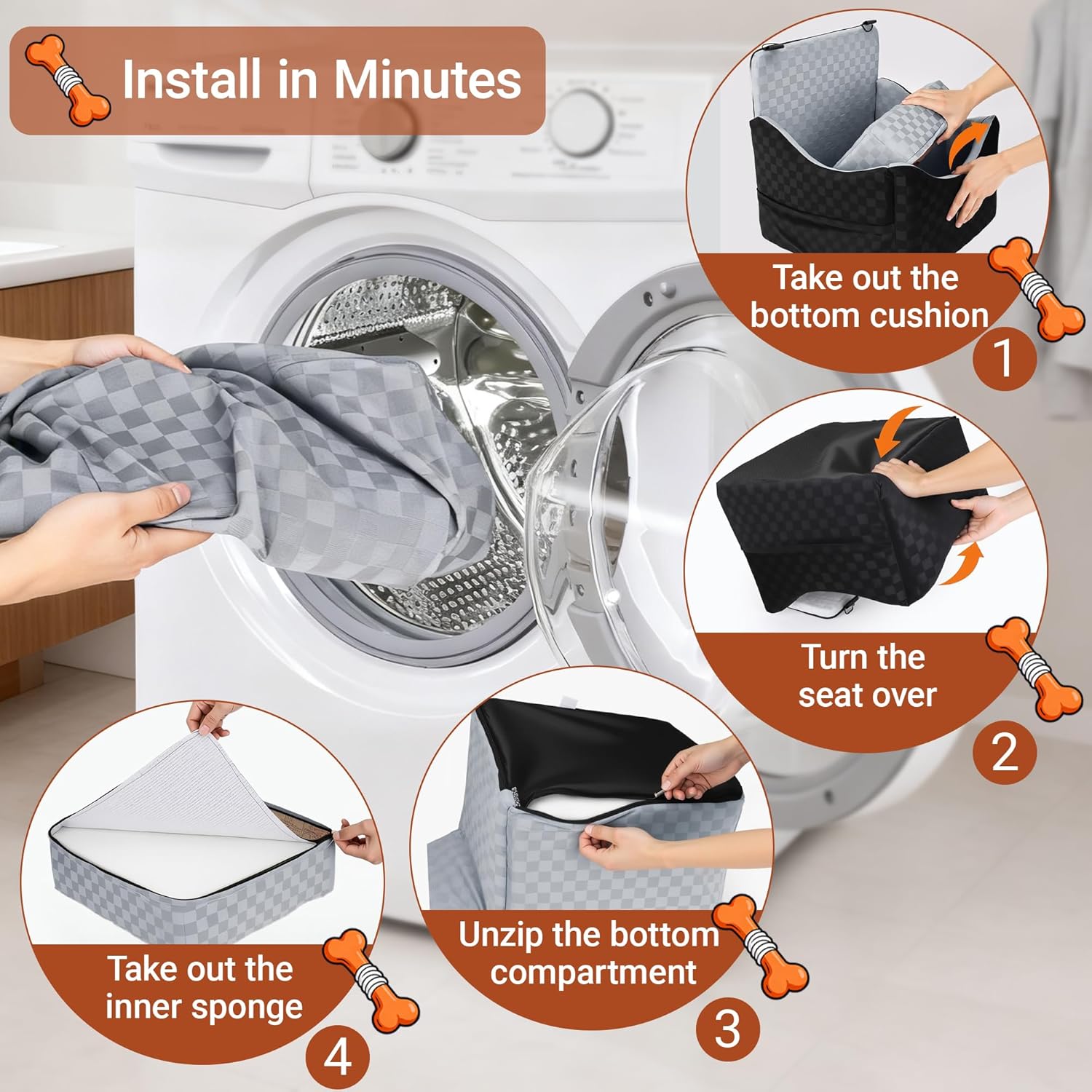 About this item Security and Stability: The dog car seat is made of high-resilience memory foam and soft, skin-friendly fabric to keep your pet comfortable and safe. The bottom and back feature non-slip materials that hold the pet car seat firmly in place, even on sharp turns or bumpy roads. Equipped with 2 built-in safety leashes and 1 adjustable headrest belt, this dog car booster seat keeps your furry friend securely seated during every trip. 2-IN-1 Design:Our versatile dog car booster seat can easily convert into a dog bed for car or home use. Simply unzip the backrest to extend the bed into a 39.3"(L) × 19.6"(W) sleeping space, allowing your pet to stretch and relax. When used in the car trunk or seat, the design expands the resting area, helping to relieve travel anxiety and improve comfort on long journeys. COMFORTABLE SIZE & VIEW: The booster car seat measures 19.6"(L) × 19.6"(W) × 19.6"(H) and provides a 5.9" ride height, giving your pet a better window view while traveling. Filled with premium memory foam and wrapped in ultra-soft velvet fabric, this dog car seat bed offers excellent support for small and medium dogs up to 35 lbs—perfect for breeds like Corgis, Pomeranians, Chihuahuas, and Schnauzers. EASY INSTALLATION & CLEANING: Install the dog car seat in minutes: simply pass the car seat belt through the bottom safety loop, secure the headrest strap, and adjust for a snug fit. The cover is removable and machine washable, and the waterproof inner lining makes cleanup quick and easy. This pet car seat is designed for effortless daily use and long-lasting durability. MULTI-SCENE USE & CARE TIPS: Suitable for most cars, SUVs, and trucks, this dog bed for car fits perfectly in both the front and back seats. It also doubles as a cozy indoor bed. Please note: the dog car booster seat is vacuum-compressed for shipping—open the package and leave it for 12–24 hours to fully expand (exposure to sunlight speeds recovery). The high-quality memory foam will quickly return to its original plush shape, ensuring lasting comfort. › See more product details