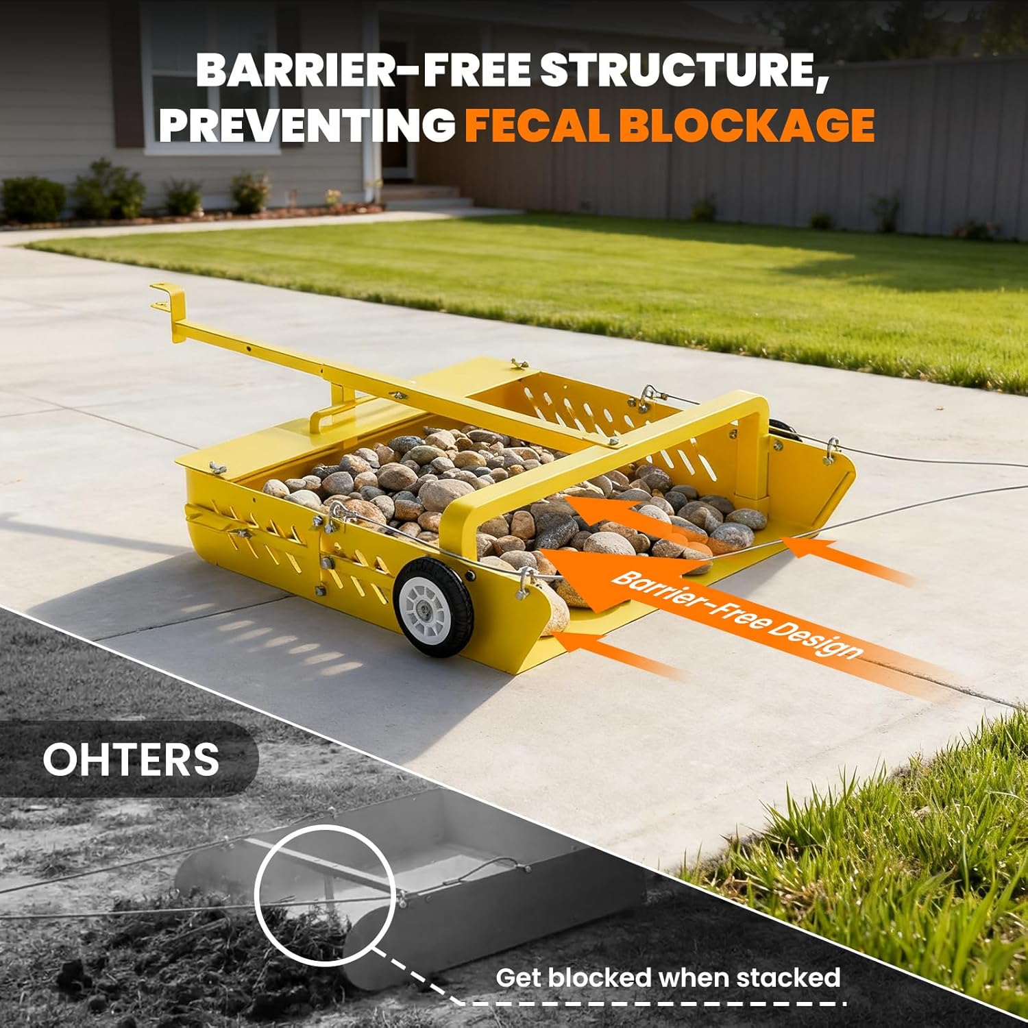 【Easy Installation】: 39.4’’L × 38.6’’W × 7.9’’H ; Item weight: 120 lbs. The unit features an integrated one-piece construction, eliminating the need for piece-by-piece assembly. Simply mount the connecting bracket with ease, and it’s ready for immediate use. 【Innovative Design】: This manure collector comes with a baffle. Secure the baffle to the top of the unit during operation; when transporting, attach it to the feed inlet to prevent collected materials from spilling. The feed inlet is free of obstructive vertical brackets, ensuring smooth and effortless collection and dumping of manure. 【Time & Labor Saving】:It outperforms traditional rakes and manure forks, covering a larger area while reducing yard cleaning time and labor costs—making paddock cleanup far more manageable. 【Heavy-Duty Steel Construction】:The main body of the unit is made of thickened steel plates. Not only is it rust and corrosion resistant, it also boasts excellent load-bearing capacity, remaining resistant to deformation even after long-term dragging or manure loading.b 【Multi-Purpose Use】:It can collect not only horse manure but also debris like nuts, pinecones, and branches. Suitable for various flat terrains such as horse farms, sheep farms, agricultural farms, and paddocks (Not suitable for uneven sandy ground). › See more product details