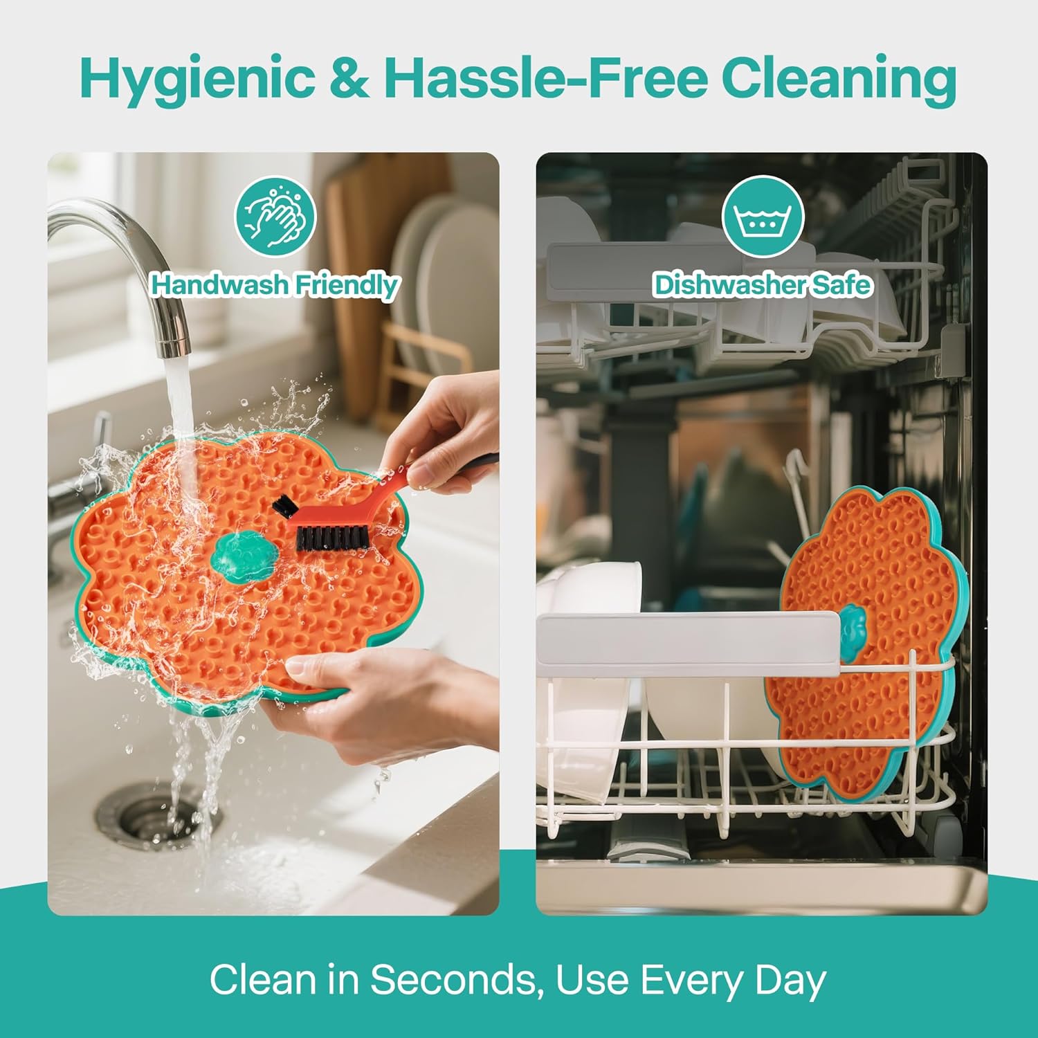 About this item 【Crate Training with Calm Focus】Transform crate time into a positive experience. Our lick mat promotes calm licking, easing your dog into crate training and helping reduce anxiety during the first 20 minutes of separation. 【Reduce Stress Through Licking】Licking triggers endorphins and helps dogs self-soothe, especially in enclosed spaces. Great for dogs prone to barking or scratching during crate confinement. 【Dual-Mount System: Crate or Floor】 Use the twist-lock knob to secure inside crates, or rely on back suction cups for use on smooth floors. Ideal for multi-scenario training. 【Slow Feeder for Better Digestion】The textured surface extends eating time, supporting digestive health and preventing gulping. Perfect for peanut butter, yogurt, or wet food. 【Safe, Easy to Clean, All-Inclusive】Made of BPA-free, food-grade silicone. Includes a cleaning brush and silicone spreader for smooth food application. Dishwasher safe. › See more product details