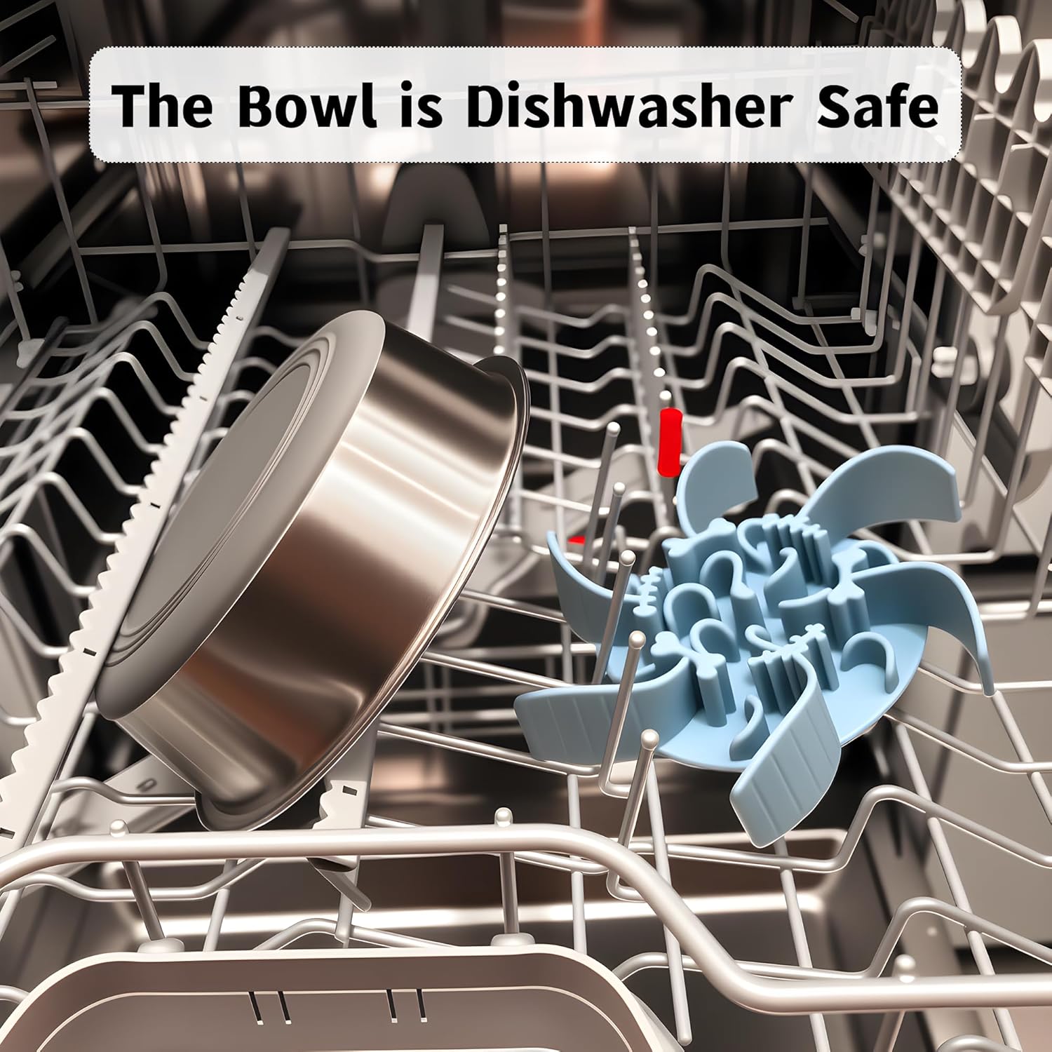 About this item 2-in-1 Functionality (Capacity: 2.8-4 cups): Easily converts into a slow feeder with a removable silicone insert, helping dogs slow down eating, prevent binge eating, and support digestive health for better daily feeding habits Safe And Durable Materials: Made from stainless steel and food-grade silicone, both non-toxic and rust-resistant, ensuring long-term use and safe feeding. All parts are dishwasher safe for easy cleaning Stable Non-slip Base: Equipped with a strong non-slip base and suction cups to prevent tipping, ideal for use on wood or tile floors, keeping your dog’s eating area clean and secure Wide Food Compatibility: Suitable for all dog sizes and all food types including dry food, wet meals, or raw diets, making it a versatile bowl for different breeds and feeding routines Easy To Clean Design: The removable insert and anti-slip base are both dishwasher safe, making it effortless to keep the bowl clean and hygienic for your dog’s daily use › See more product details