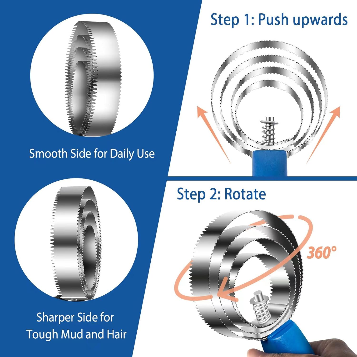 • Dual-sided spring steel This Curry Comb features two sides – a smooth one for daily use and a sharper one for removing stubborn dirt and hair, highlighting its versatility. The Curry Comb's teeth are durable, designed not to bend or break, and large enough to effectively reach the undercoat of larger animals.