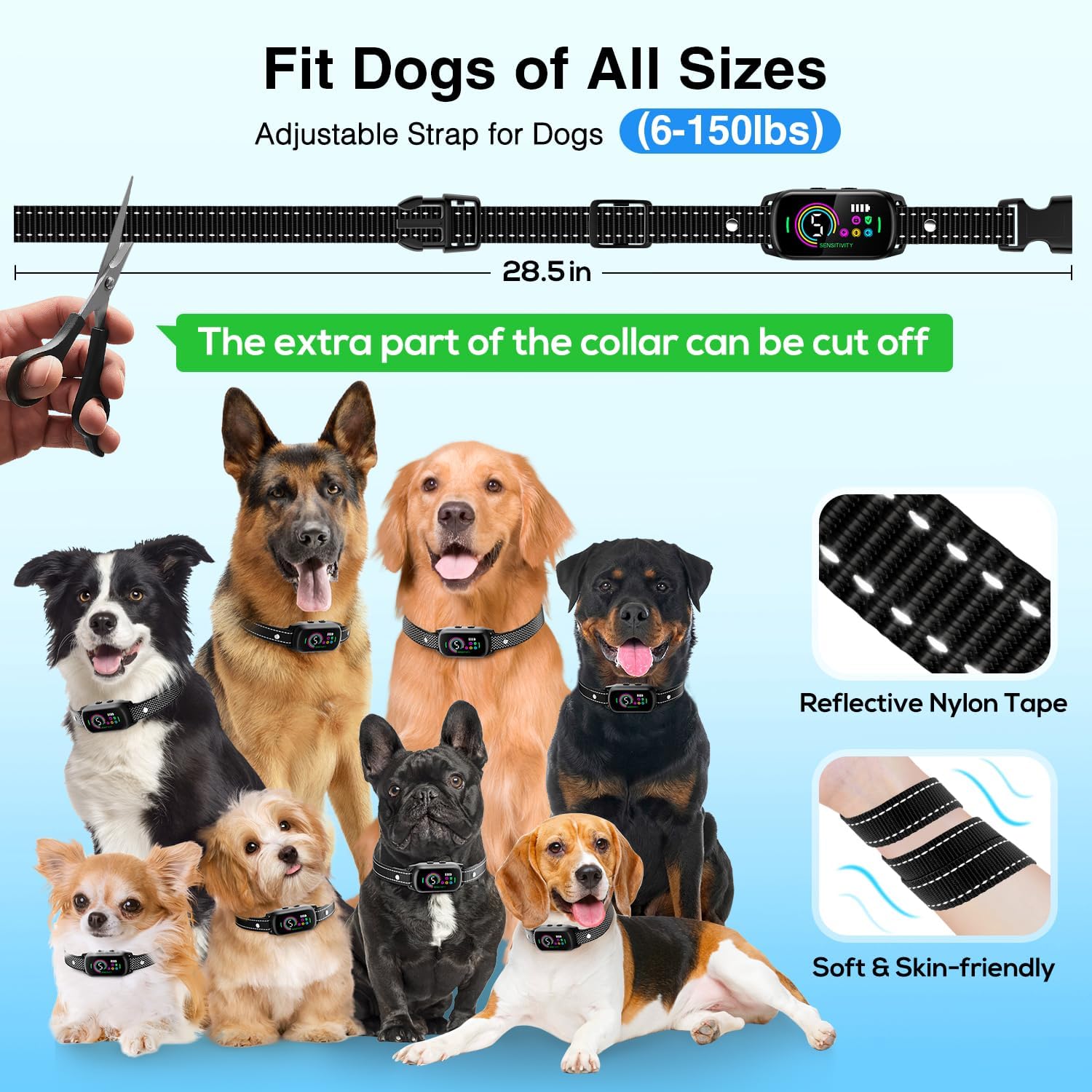 About this item 5 Humane Training Modes - Our automatic bark collar offers 5 modes to gently correct excessive barking. You can choose beep, vibration, or a combination of both, and there's also a shock option for the more stubborn barkers. Progressive training helps your dog learn effectively without causing harm, ensuring a positive experience throughout. 20 Days Standby - Fast charging lets you say goodbye to long waits while enjoying up to 20 days of battery life. The intuitive LED color display provides easy navigation and plenty of information at a glance. Make it easier than ever to manage your dog's training progress. The magnetic charging method greatly improves the water resistance of the dog shock collar, preventing rain, snow, and mud splashes. Upgrade Protection Mode - Our innovative protect mode pauses the dog training collar after 7 consecutive triggers, providing 30 seconds of relief to prevent over-stimulation. With Nhilvyg, your dog will experience a stress-free learning process that achieves desired behavior change through a scientific, humane approach. No Error Triggering - The no bark collars for dogs use an advanced AI smart dog barking recognition chip and motion detection technology to eliminate background noise or false triggers from other dogs, ensuring accurate and effective barking correction to avoid unnecessary stress or discomfort. Suitable for All Dogs - This adjustable anti barking device for dogs is suitable for dogs of all sizes. The lightweight design ensures that your dog does not bear the extra weight, while the skin-friendly reflective nylon strap provides extra safety during outdoor walks. This barking collar is your preferred solution to control barking without compromising comfort. › See more product details