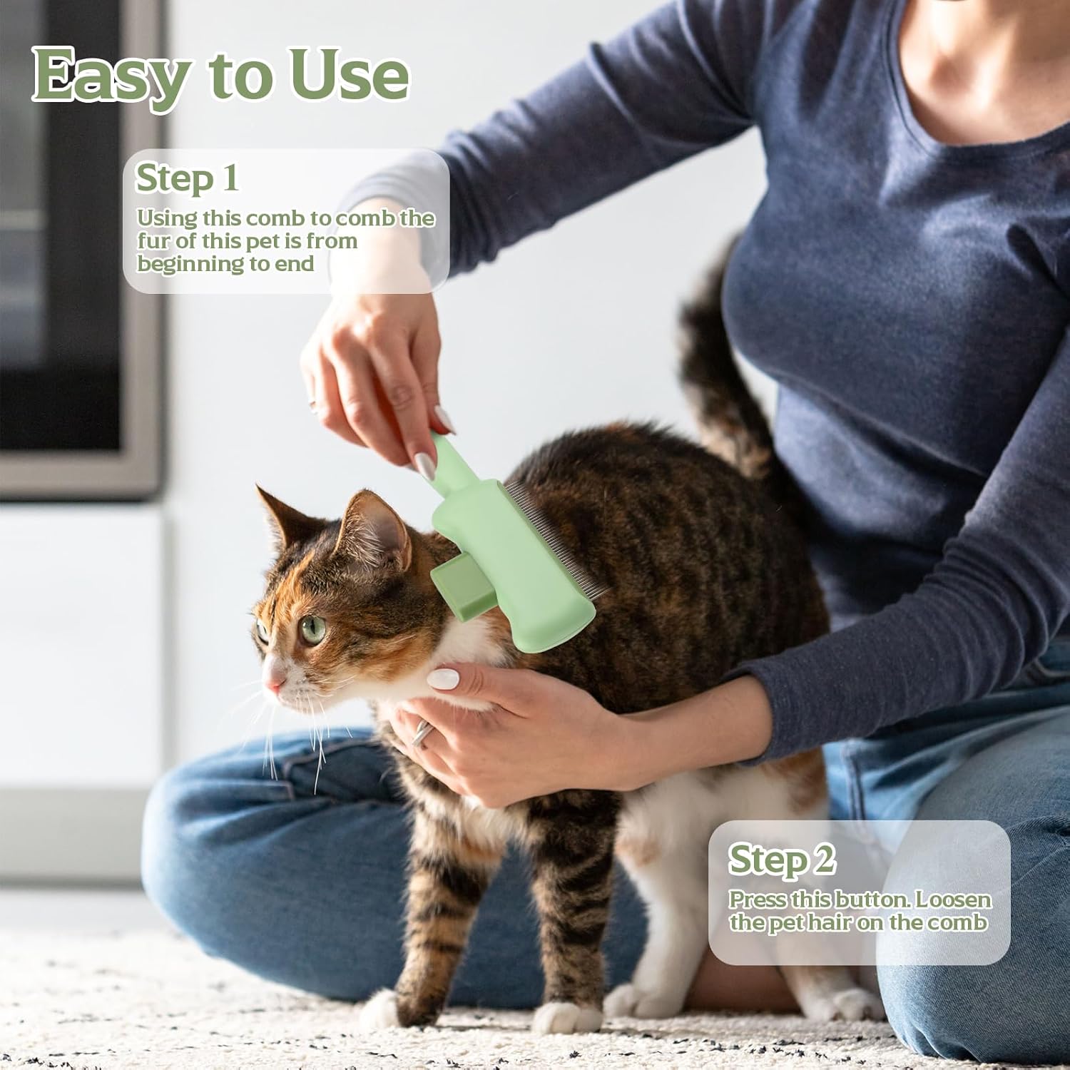 About this item Professional multifunctional flea comb: Use our two person professional flea comb to experience the most perfect beauty solution! This multifunctional flea comb is suitable for all furry pets and can be used as an effective flea comb for both cats and dogs. The stainless steel teeth equipped with it are precisely arranged, which can easily remove fleas and dirt, while also evenly distributing natural skin oils, making pet hair healthier. Carefully designed: With our innovative dual configuration flea brush, you will easily tackle all beauty challenges! The tightly arranged fine teeth serve as an excellent flea comb, which can clear all fleas for dogs, even the smallest ones can be caught; A wider tooth gap can avoid pulling and pulling on long haired dog breeds. The flea comb is suitable for both large dogs and gentle cats, and can adapt to various hair types from thick double layered fur to fine cat fur. Ergonomic anti slip grip: With our carefully designed indoor cat flea comb, you will enjoy a comfortable grooming experience! This lightweight grip features rubber textured grooves that provide stable control over prolonged use, making it an ideal flea comb for anxious cats or first-time users. Whether used as a comb to soothe restless indoor cats or as a sturdy flea and tick comb for dogs, the comfortable grip ensures precise operation and reduces hand fatigue. One click cleaning function: The one click floating hair release device completely changes your cleaning process. We adopt a self-cleaning pet comb system! Simply press the innovative release button on these anti flea comb tools to immediately remove accumulated hair and debris, making the operation hygienic and convenient. This outstanding feature makes our comb designed specifically for indoor cats extremely easy to maintain cleanliness, instantly transforming the usually chaotic pet care process into a seamless and hygienic experience. Perfect Set: This exquisite set includes two identical high-performance combs - you can use one as the primary dog flea comb and the other as a specialized cat flea comb, or place them in different positions for ease of use. Very suitable for families with multiple pets, ensuring a clean comb is always available during long grooming processes. › See more product details