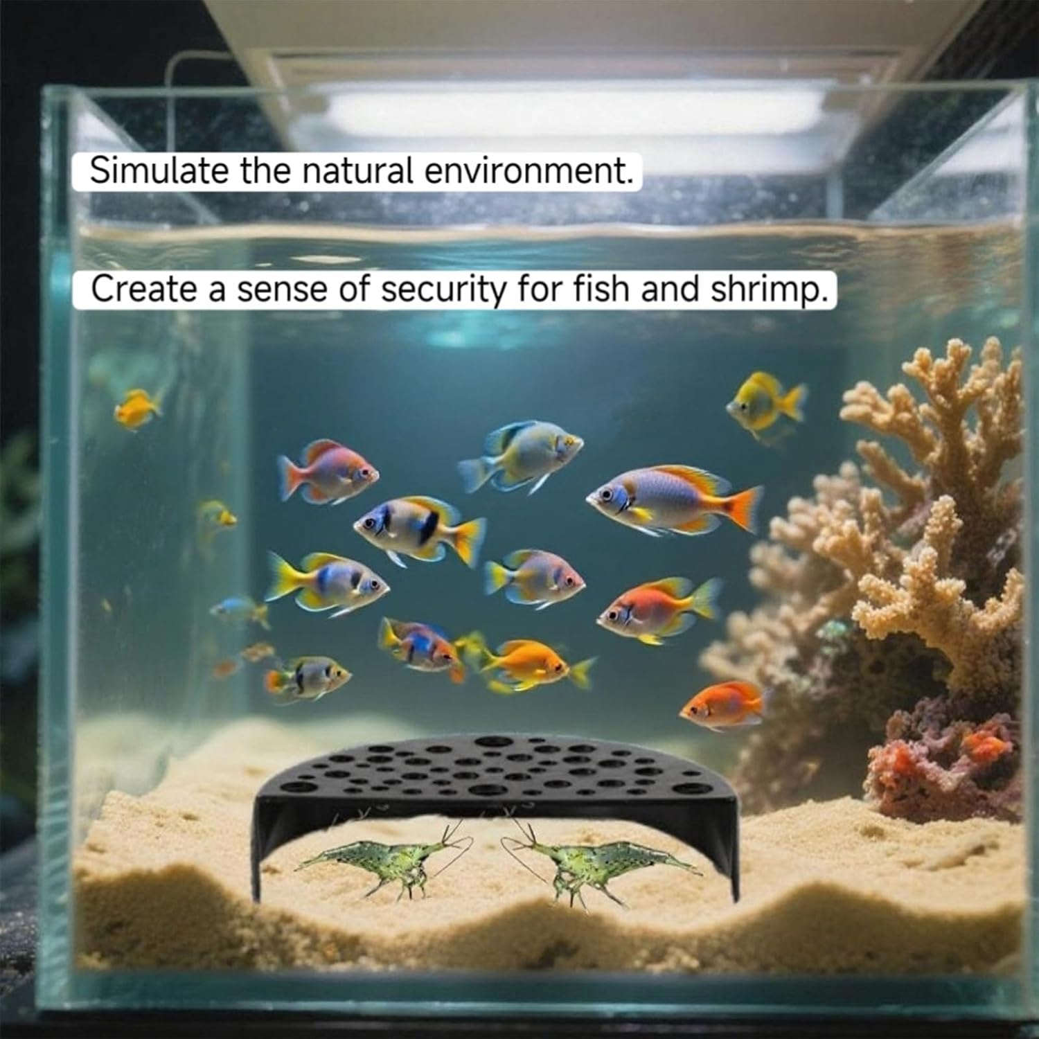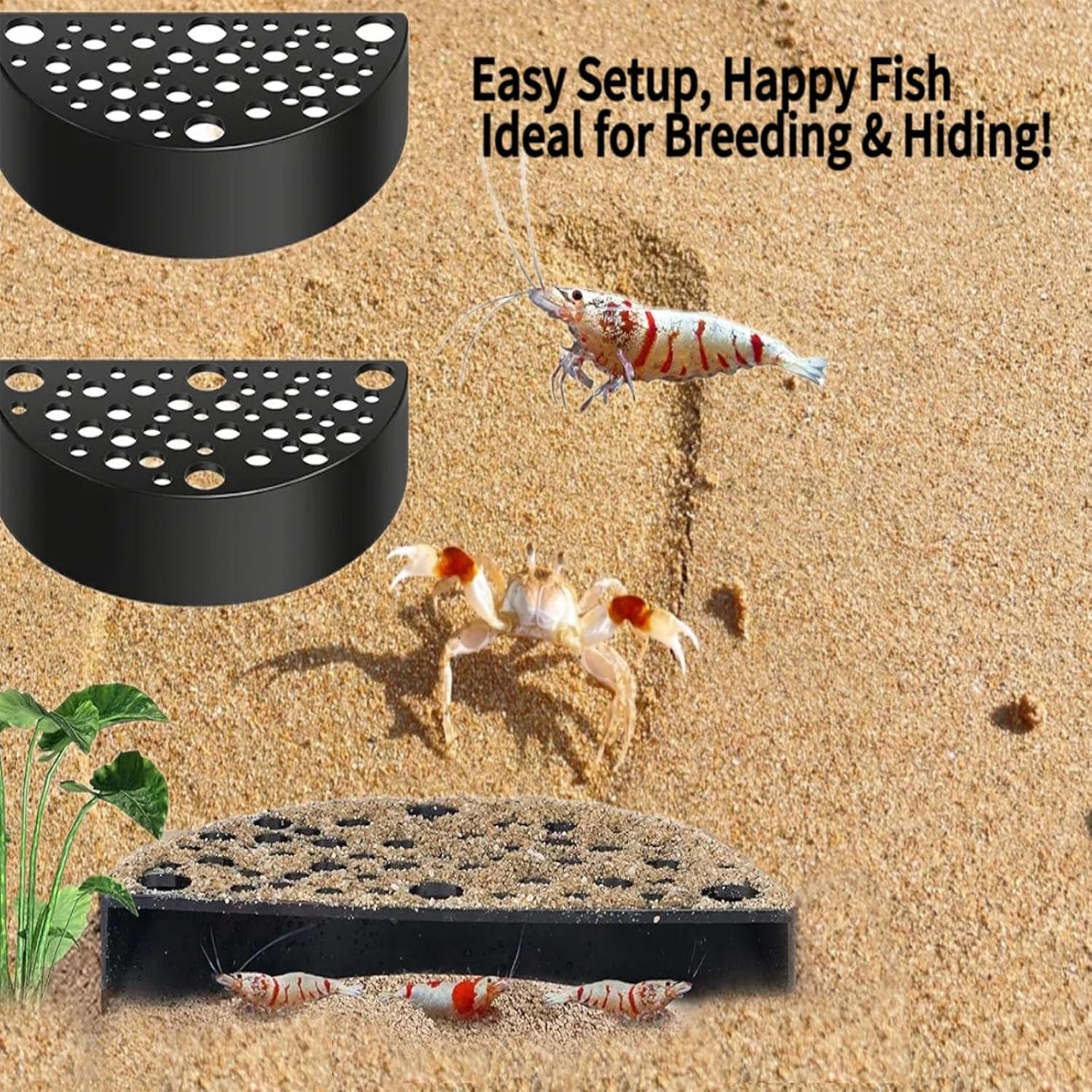 Product Description Material: ABS plastic,long-lasting, reusable, not easy to break,colorfast. Aquarium Shrimp Tank Accessories The shrimp house provide conditions that promote the healthy growth and development of shrimp and other small aquarium organisms; they protect the shrimp population while enhancing the aquarium's appearance. Specifications Color: black Package includes: 2 * shrimp caves Note: There might be deviation of about 0.4 - 1.18 inch beacuse all dimensions are measured manually.
