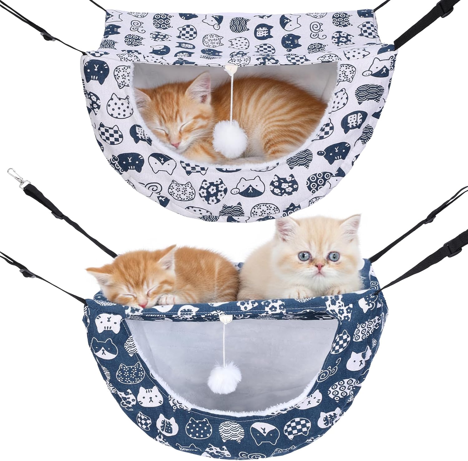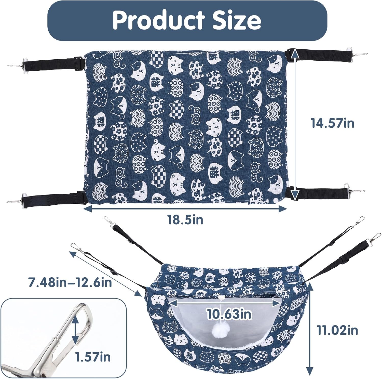 Welcome to our store!Features:Provide the ultimate comfort and entertainment for your small pets with this 2-piece cat cage hammock set. Each set features two distinct styles of double-layer, soft hanging beds designed for indoor cats, kittens, ferrets, hamsters, and rabbits. The integrated playful ball adds an element of fun, encouraging activity and engagement. Crafted from plush, breathable materials, these hammocks offer a cozy retreat for sleeping or lounging while the sturdy construction offers stability and durability. Easy to install in most cages and carriers, this versatile set maximizes vertical space, creating a multi-level resting and play area that helps keep your pets content and your cage organized.Specifications:Material: Cotton, Polyester/PlushColor: 2 StylesProduct Size: 18.5 x 14.57 x 11.02 inchesPackage Includes:2 Pcs x Cat Hammock for Cage with BallNotes:Manual measurement, please allow slight errors on size.The color may exist a slight difference due to different screen displays.