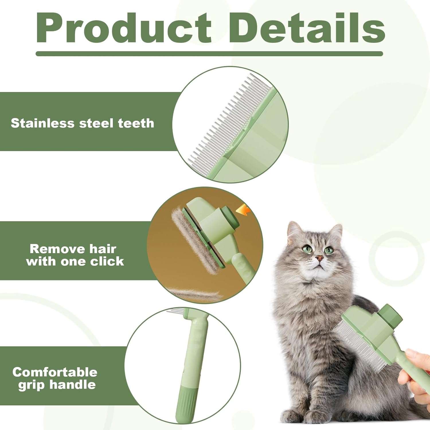 Material:Metal Hair Type:Normal Size:Medium Number of Items:2 The specially designed long and short metal teeth cat comb comb both your pet's topcoat and undercoat. The long teeth separate tangles and straighten hair, while the short teeth remove and condition the undercoat. The new, ergonomic, non-slip handle is not only easy to operate but also helps prevent accidents. The comfortable grip makes grooming easier and painless. After cleaning your pet, simply press the self-cleaning button. The shield pops up, separating the combed hair from the metal needles, and then wipes away the hair. The cat brush button on flea comb saves time and effort when combing and cleaning. This flea comb for dogs is made of environmentally friendly ABS material and stainless steel teeth, making it environmentally friendly and healthy, safe to comb and lick. It is also fully washable for easier cleaning. Regular use of this flea comb for cats with a dog flea comb effectively removes loose hair, tangles, matted hair, dander, and residual dirt. Suitable for dogs, cats, and rabbits with short, medium, long, coarse, fine, or curly hair, it will make your pet love grooming and keep your home clean and hygienic. If you have any questions or are unsatisfied with zen brush for cats, please feel free to contact us and we will provide the best solution. Your satisfaction is our top priority.