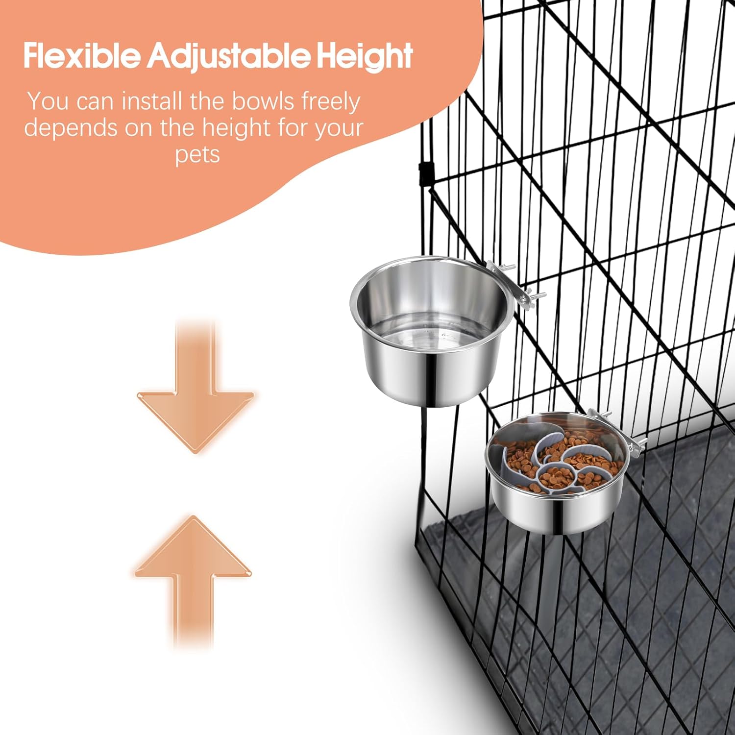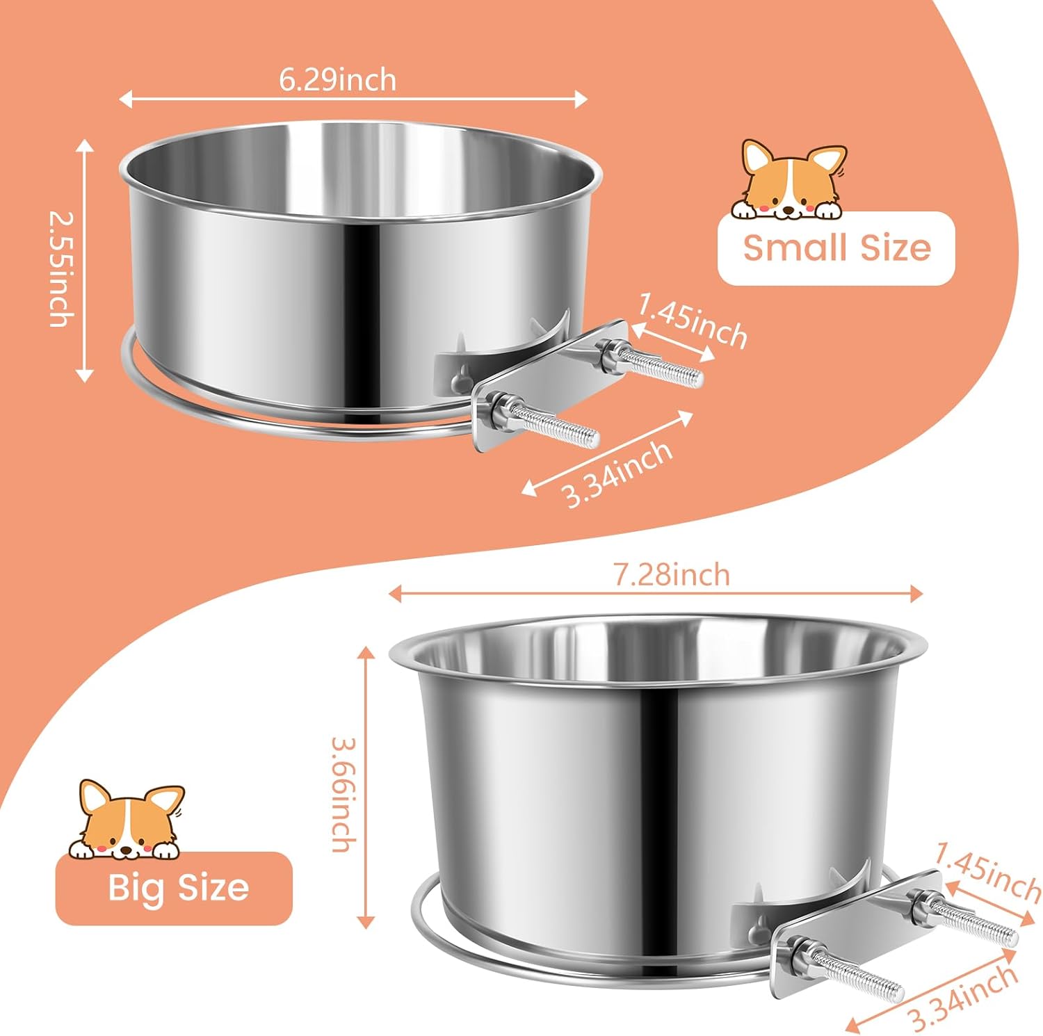 About this item 【Anti-spill】: The bowl and holder attach easily and securely to the cage, so your pets can freely get a drink or food without making a mess. You don't need to worry the bowl will tip over resulting in your pets being wet. ( Note: Suit for medium and large-breed pets. ) 【Durable & Easy to Clean】: Made of food-grade stainless steel, rust-resistant and safe to use, does not leave any smelly odors. Easy quick cleaning for stainless steel bowls, the bowls are removable for easy clean-up and support washing by dishwasher. 【Save Space & Keep Neat 】: By having the bowls raised off the kennel floor, there is more sleeping area and space for a litter pan. It won't wobble or spill, you don't have to clean up dumped water dishes every day. 【Easy to Install 】: The mounts are easy to maneuver and are very sturdy to keep the food and water where they should be. Our dog bowls can securely attach to pet crates, cages, or kennels. 【What You Will Get】: Including 2 size bowls. The smaller one you can use as food bowls. The larger one you can use it as a water bowl. › See more product details