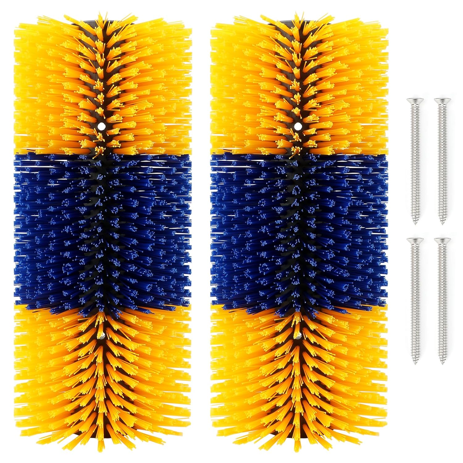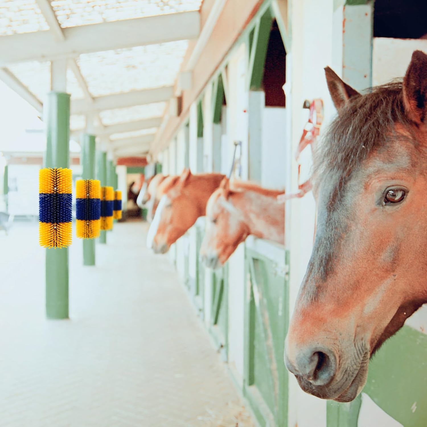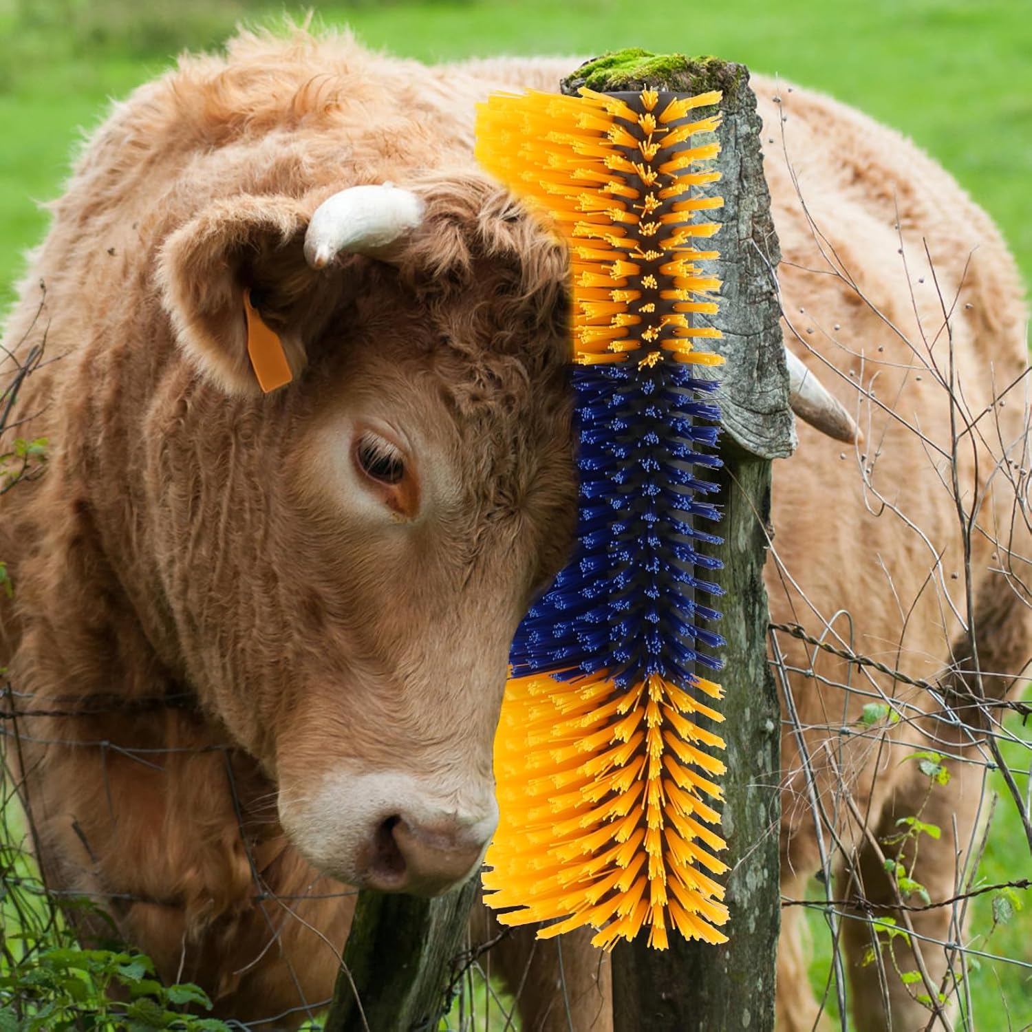 About Livestock Scratcher Brushes Features Our cattle massage brush is designed to provide the maximum soothing scratching experience for livestock and is specifically designed to meet your livestock grooming needs. The stiff bristles of this scratch brush are made of high-quality nylon material that won't harm your livestock's skin or hair. The bristles are dense, sturdy and resistant to shedding, damage and breakage, effectively removing dirt and irritants from your animal's skin, preventing skin problems and solving scratching and massaging issues.SizeOur set includes 17.52*7.87 inch bristles that are 2.2" long, a livestock scratching brush, and and two 3.95 inch spikes that help hold the cattle brush securely where you want it to be, providing the stability needed for comfortable scraping of livestock.Carefully crafted multi-functional horse grooming brush, if you have a friend who runs a farm around you, you can give them our scraping brush. It will be a perfect, thoughtful gift that they will be happy to receive.
