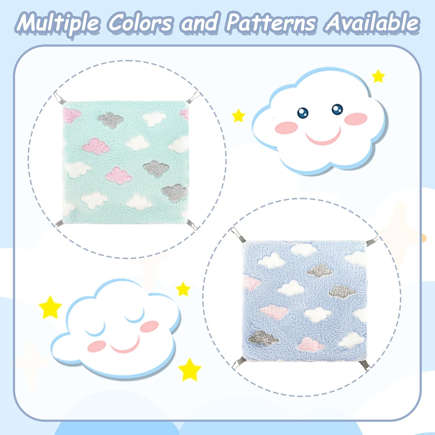About this item Package Including: you will get 2 different colors of rat hammocks, including green and blue, which are printed with many clouds, cute and attractive; The ample quantity and diverse colors can meet your replacement needs Suitable Size: the small animal hammock measures about 11.42 x 11.42 inch/ 29 x 29 cm, large enough to accommodate most small animals such as hamsters, ferrets, mice, chinchillas, etc., providing your small pets with a spacious space to play Quality Material: our rat bed is made of quality fleece material, warm and comfortable, providing a soft and comfortable place for your lovely pet to relax, play and sleep Easy to clean: the rat hanging bed can be hand-washed or machine-washed, easy to clean; The first time using the guinea pig hammock, it needs to be cleaned for a while to make the pet feel comfortable and healthy Multiple Application: this ferret hammock is suitable for use in pet hospitals, homes, and travel, suitable for small rabbits, kittens, hamsters, puppies, ferrets, chinchillas, pet mice, and other small animals › See more product details