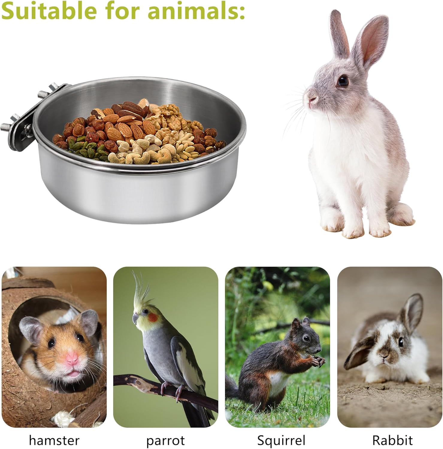 About this item 【Stainless Steel Bowl】Bird bowl is made of premium stainless steel, rustproof,not easy to break or deform,safe and durable, have long service time.Perfect for your pet's long lasting use. 【Easy to install】Easy to install on the cage, the removable bracket holds the bowl tightly in place and helps reduce food and water spills. 【Easy To Clean】For bird cage accessories,conveniently install inside or outside the Bird Parrot Cage. Easy clean by water,don’t waste much time on washing. 【Widely Application】Bird food cups are suitable for feeding various small animals, such as birds,ferret,parakeet,African grey parrots, parrots, love birds,macaws,pigeons,chinchillas,hamsters, gerbils, guinea pigs, etc. 【Package List】Including 2 pieces bowls and 2 brackets,small bird cup:10 cm/3.93 inches in diameter;4 cm/1.57 inches in height.medium bird cup:12 cm/4.72 inches in diameter;4.3 cm/1.69 inches in height. Large :14 cm/5.51 inches in diameter;5.2 cm/2.04 inches in height.with an enough quantity to easily satisfy your pet's daily use and replacement demands. › See more product details