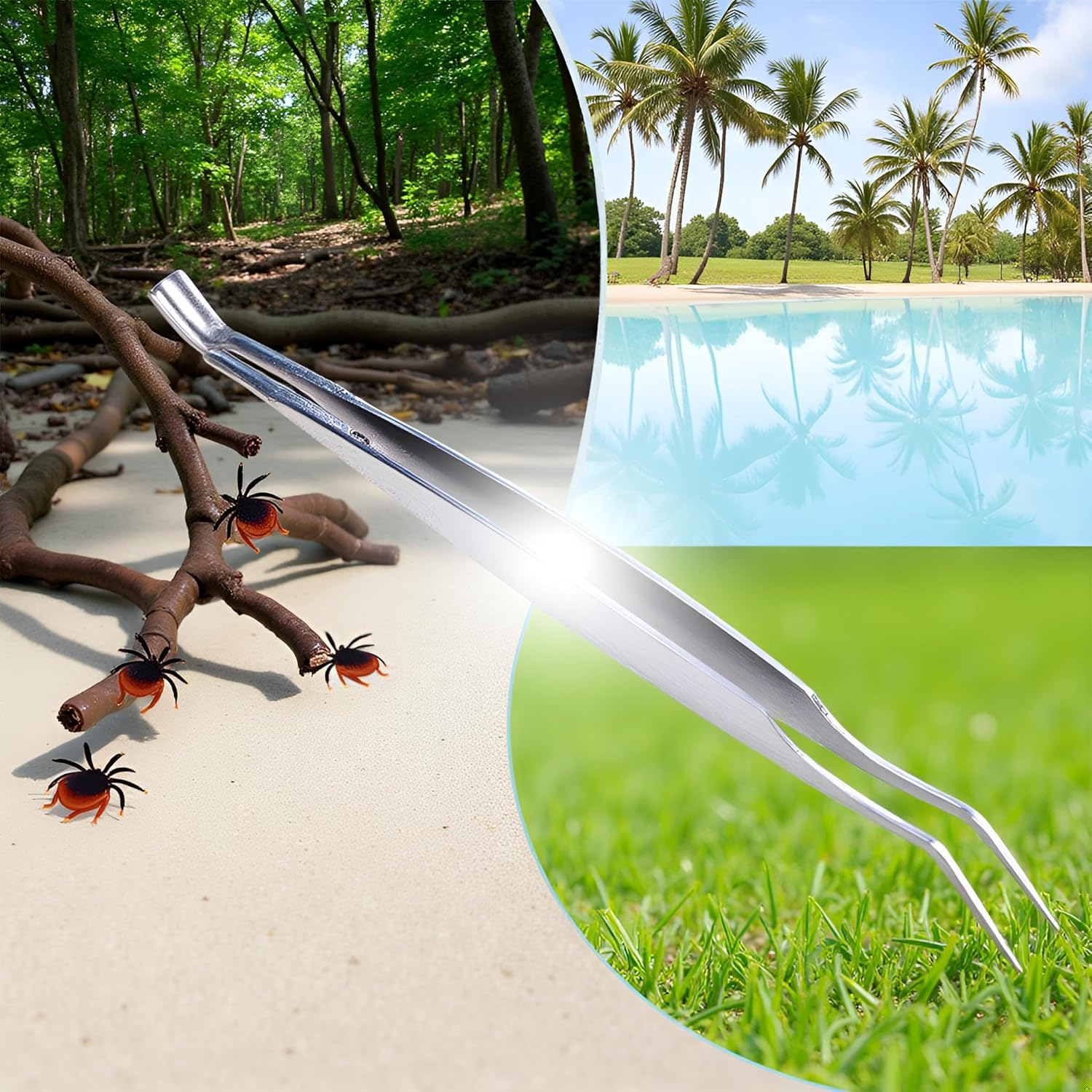 About this item DUAL-TIPPED DESIGN: Professional-grade stainless steel tweezers featuring two distinct tip styles for effective tick removal from different areas VERSATILE USE: Suitable for humans and pets including dogs and cats, making it an essential first aid tool for the whole family MATERIAL QUALITY: Constructed from stainless steel that's easy to clean and maintain PRECISION GRIP: Specially designed tips ensure secure grasp of ticks at their base for complete removal without breaking or crushing CONVENIENT SET: Includes 2 pieces of tick removal tweezers, allowing you to keep one in your first aid kit and another in your pet care supplies › See more product details
