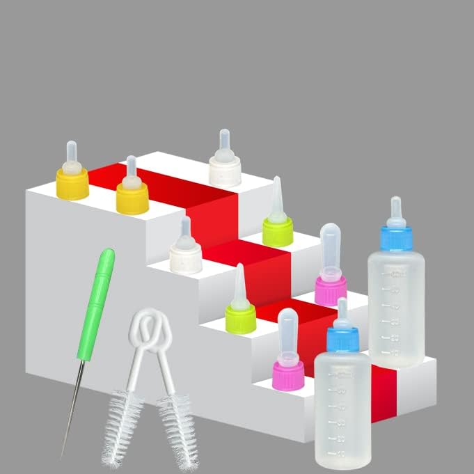 About this item 【Wide range of application】Suitable for newborn pets that have not yet grown teeth, for kittens, puppies, hamsters, canaries, squirrels, rabbits, etc., you will be a very gentle owner. 【Pet care kit】Set includes 2 bottles, 10 replaceable silicone teats, 1 teat opening cone, 2 cleaning brushes for puppies, kittens and small wildlife; bottles come in various shapes; can be used for different purposes to meet the different needs of small pets, specifically designed for manual feeding of puppies, kittens and other newborn animals. 【Tips for use】 Kitten feeding set is especially suitable for puppies that are too small to suckle, the size of the nipple hole can be tailored to the specific pet; before use, please wash the kitten bottle and nipple with warm water, then use the nipple opening cone to make a small hole in the kitten nipple, the diameter of the hole can be adjusted as needed; when the pet care bottle is squeezed, the liquid flows out and the animal is ready to be fed. 【Clever design】 Pet feeding bottle is very soft, with 60 ml scale bottle, capacity of 2.1 ounces, easy to clean the bottle, easy to squeeze, you can control the amount of milk during pet feeding to prevent too much or too little intake, and the feeding bottle is easy to clean and reusable. 【Prevent infection】The feeder can be freely matched with small, medium and large teats, each teat can be freely replaced, the bottle brush is easy to clean, when your pet is sick, please use a separate special teat to avoid cross infection with other pets. › See more product details