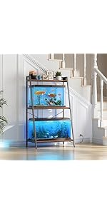 About this item Wide Fish Tank Stand: Fish tank stand is suitable for 20-29 gallon fish tanks, including 20-gallon long tanks, with a desktop size of 30.7 inches * 16.5 inches, which can accommodate most standard size fish tanks. However, to ensure a perfect match, we recommend measuring the dimensions of your fish tank before purchasing. 2 in 1 Space Design: Stand is designed with two levels for fish tank placement, the desktop can accommodate differently shaped 20-29 gallon fish tanks, and the bottom can also hold small 5-10 gallon fish tanks. This structure raises the height of the fish tank to a more comfortable viewing height while maximizing the use of limited space. It keeps your fish tank storage neat and tidy. Sturdy and Stable: Stability is crucial for a fish tank. Therefore, our stand is made of thick steel with powder coating and sturdy MDF board, ensuring a weight capacity of 330 pounds for the desktop and 110 pounds for the bottom, to ensure durability, moisture resistance, and prevent shaking or instability like other products on the market. Convenient Storage: Stand features a spacious storage cabinet in the middle, making it easy to store fish food, nets, gravel cleaning agents, and more. The storage cabinet keeps your fish tank area clean and tidy and allows you to access the items you need easily. Modern Appearance: Aquarium stand features a modern black design that matches various home decor styles. This design is not only practical but also beautiful, making it the perfect decoration for your home. Tanks not included. Support dimensions: 30.7" x 16.5" x 31.88". 2-Year Support - We attach great importance to product quality and customer service. If you experience any quality problems, please feel free to contact us. › See more product details