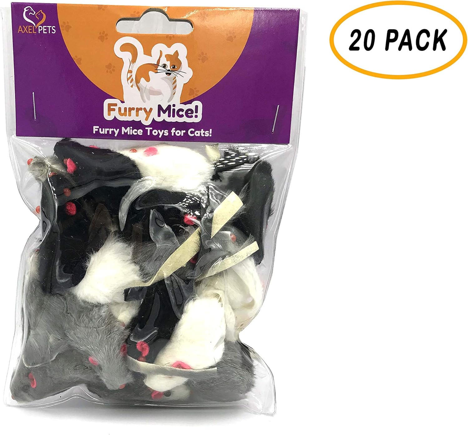 Perfect Gift for pet’s lovers: with their eye-catching real rabbit fur, catnip smell and rattle sound Axel Pets 20 Furry Mice will energize your cat providing Interactive and Independent play.Made of Real rabbit Fur - 100% reclaimed rabbit fur that has been salvaged to be used in these mice. All possible steps to ensure a eco-friendly product has been made. Your cat won’t even know it’s working out; it’ll be too busy having fun as these toys are made to withstand even the strongest swats and your kitten's chewing and clawing instincts. AXEL PETS provide a wide selection of pet sweaters, shirts, toys and accessories; our philosophy is pretty simply:We passionately innovate, create and distribute amazing pets’ products that strengthen the bond between pets and their owners.