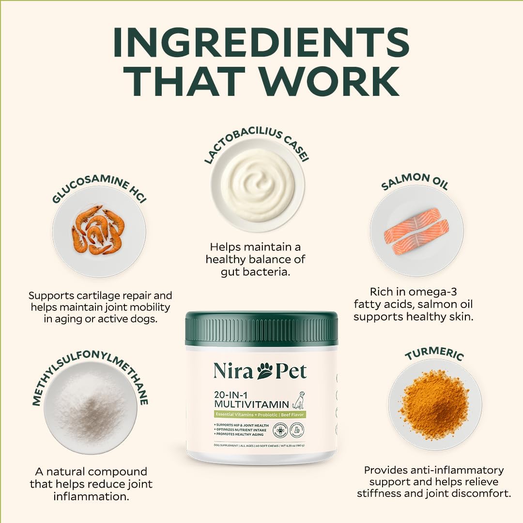 About this item Supports hip and joint health Aids digestion with added probiotics Boosts immune system and nutrient absorption Promotes healthy skin, coat, and aging Supports heart, brain, and vision health › See more product details