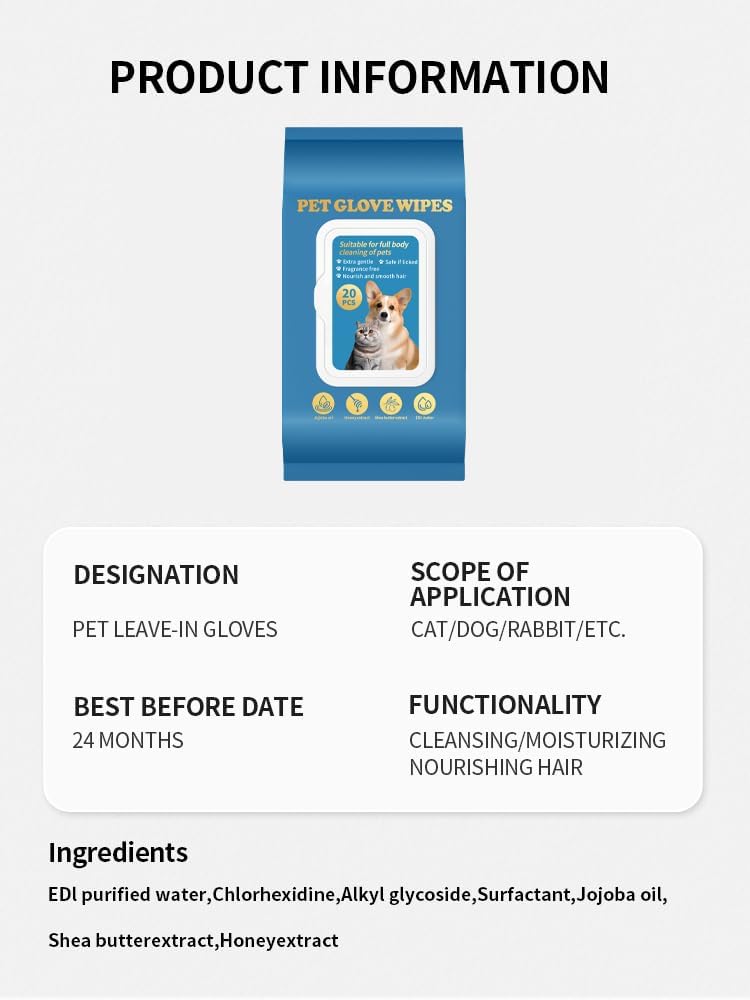 - Included Components: 20 PCS Pet Glove Wipe