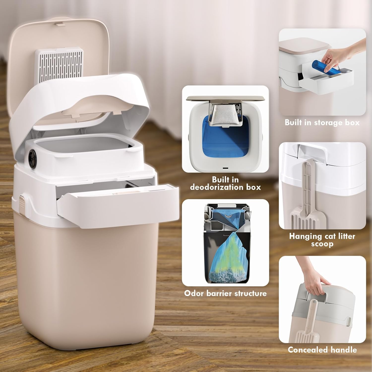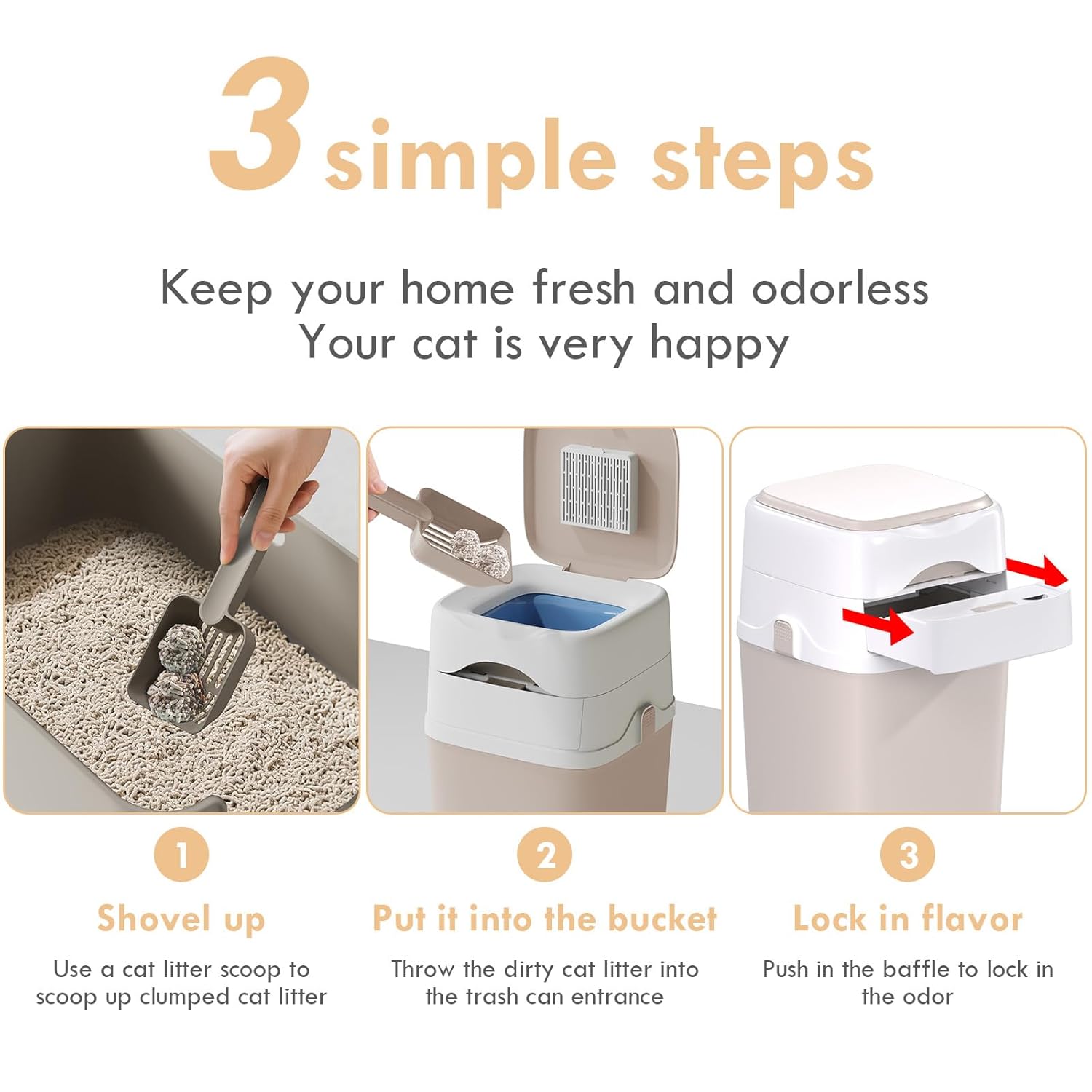 About this item Extra-Large 9.5L Capacity: litter disposal bin holds up to 10 days of litter waste for one cat—less emptying, more convenience. Triple Odor Control: Designed with a sealed lid, odor-blocking inner partition, and high-performance 7-layer EVOH bags, this litter bin delivers triple protection against unpleasant smells. The included EVOH liners outperform regular trash bags by effectively locking in odors and preventing them from escaping, keeping your home fresh at all times. 10-Day Freedom: No more daily trash trips. Our 9.5L cat litter disposal holds 10 days of waste for one cat. cat trash can comes with 2 Roll refill bag (lasts 4 months!), so you start saving immediately. REDUCES ODOR: Dual Locking design, Includes charcoal cat litter deodorizer What's Included: Comes with 1x trash can, 2 Roll refill bags (1 roll),2x Deodorizers 1x litter scoop. › See more product details