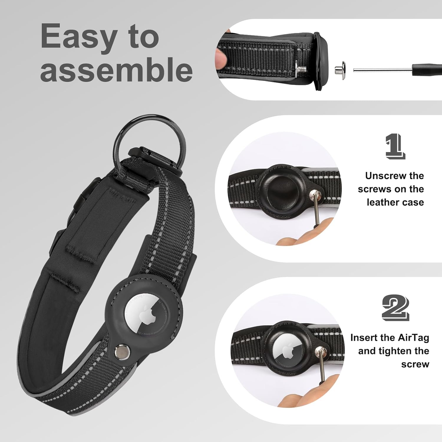 About this item ODOKELE's integrated Air Tag dog collar design prevents the AirTag from falling off or shaking. No need to purchase a separate collar and AirTag holder, save your time and cost!(AirTag is NOT INCLUDED) This reflective dog collar features reflective stitching and fully reflective edges. The high-visibility strips make it easier to find your dog in dark or low-light conditions, safer for your dog when walking or jogging. Our gps dog collar is made of high-quality 1000D nylon fabric with a breathable lining for comfort. The leather AirTag protective case fits perfectly with Apple AirTag to ensure that AirTag is secure and stable. The adjustable buckle design of this dog tracker collar allows you to easily adjust the collar to fit your dog's neck circumference, making it more comfortable for your dog to wear. The O-ring can be used with a leash or ID tag. Available in three sizes (S:12"-14.5", M:14"-16.5", L:16"-19", XL:18"-21.5"). Please measure your dog's neck circumference before ordering to choose the most suitable size. › See more product details