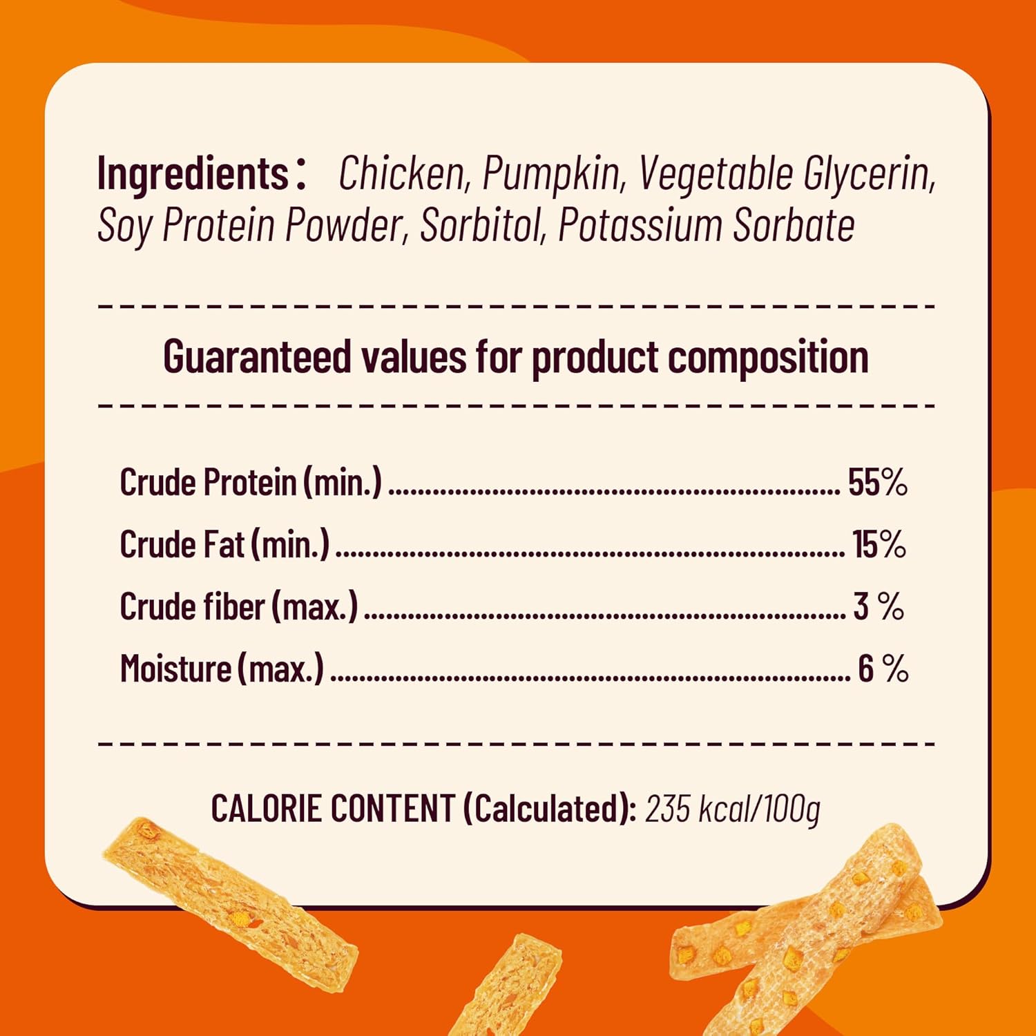 Treat your dog to a symphony of flavor and nutrition with our Chicken & Pumpkin Jerky Dog Treats. We've combined pure chicken breast into a soft, chewy jerky and embedded it with real freeze-dried pumpkin pieces, creating a limited-ingredient, grain-free snack that supports your dog from the inside out. This powerful duo delivers high-quality protein for strong muscles and natural fiber to promote digestive health and easy digestion, making it a gentle yet delicious choice for dogs with sensitive stomachs. Perfect for any occasion, these soft treats are easily breakable for training treats and serve as a long-lasting chew that helps maintain dental health. Made with all-natural ingredients and free from common allergens and artificial preservatives, it’s the wholesome, safe, and healthy treat your puppy, adult, or senior dog will love. Give your best friend the nutritious reward they deserve.