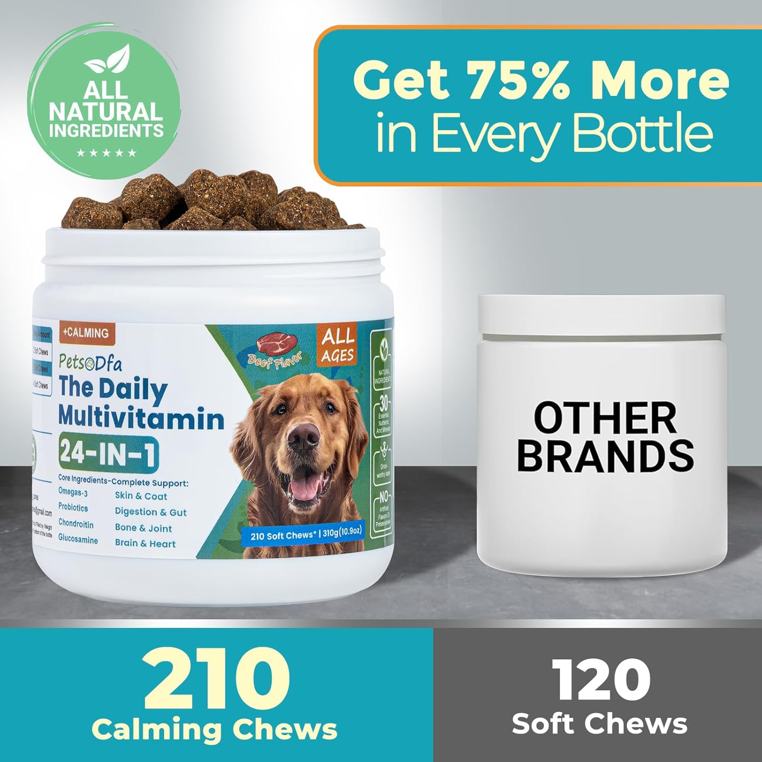 About this item ๐ซ๐-๐ฃ๐ฎ๐ฐ๐ธ ๐ผ๐ณ ๐๐๐ ๐๐ฎ๐น๐บ๐ถ๐ป๐ด ๐๐ต๐ฒ๐๐ ๐ฐ๐ข๐ญ๐ก ๐๐จ๐ง๐ฎ๐ฌ ๐๐ข๐๐ญ๐ฌ: Bulk-sized dog multivitamins chewable offering months of supply, perfect for multi-pet households or long-term vitamins for dogs support.Plus a free chew bone toy and grooming comb to keep your furry friend happy, healthy, and pampered ๐๐-๐ข๐ง-๐ ๐๐ผ๐ด ๐ ๐๐น๐๐ถ๐๐ถ๐๐ฎ๐บ๐ถ๐ป: Comprehensive dog vitamins supplement, with Chondroitin & Probiotics to support immunity, joints & digestion ๐๐ผ๐ฟ ๐๐น๐น ๐๐ด๐ฒ๐: Complete dog multivitamin formula supports puppies, adults & senior dogs with essential vitamins for dogs and nutrients ๐๐น๐น-๐ก๐ฎ๐๐๐ฟ๐ฎ๐น ๐๐ผ๐ด ๐ฆ๐๐ฝ๐ฝ๐น๐ฒ๐บ๐ฒ๐ป๐๐: Wheat-free, 24-in-1 pet vitamins with pure ingredients for complete canine nutrition. Easy & tasty dog supplements your pet will love ๐ฉ๐ฒ๐-๐ฅ๐ฒ๐ฐ๐ผ๐บ๐บ๐ฒ๐ป๐ฑ๐ฒ๐ฑ ๐๐ผ๐ด ๐ฆ๐๐ฝ๐ฝ๐น๐ฒ๐บ๐ฒ๐ป๐๐: Trusted by US veterinarians, our premium dog vitamins deliver science-backed nutrition for optimal health & results you can trust โบ See more product details