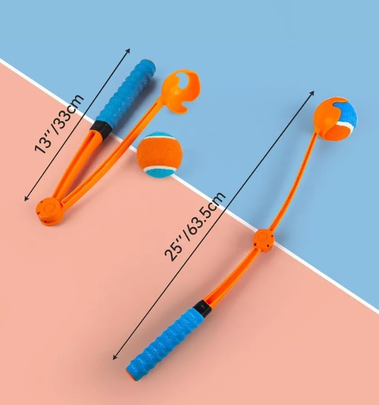 Transform your game of fetch with this innovative ball launcher that combines convenience with enhanced throwing power. The foldable design allows for easy storage and portability - simply press with your finger to collapse it into a compact form. This interactive dog toy helps you achieve greater throwing distance with minimal effort, making playtime more exciting for your furry friend. The tennis racket-style handle provides a comfortable grip during extended play sessions. One of its standout features is the ability to pick up balls from the ground without bending down or touching slobbery tennis balls. The launcher comes complete with a 2.5-inch tennis ball, perfect for hours of engaging play. Whether at the park or in your backyard, this ball thrower helps you keep your pup active and entertained while saving your arm from fatigue.