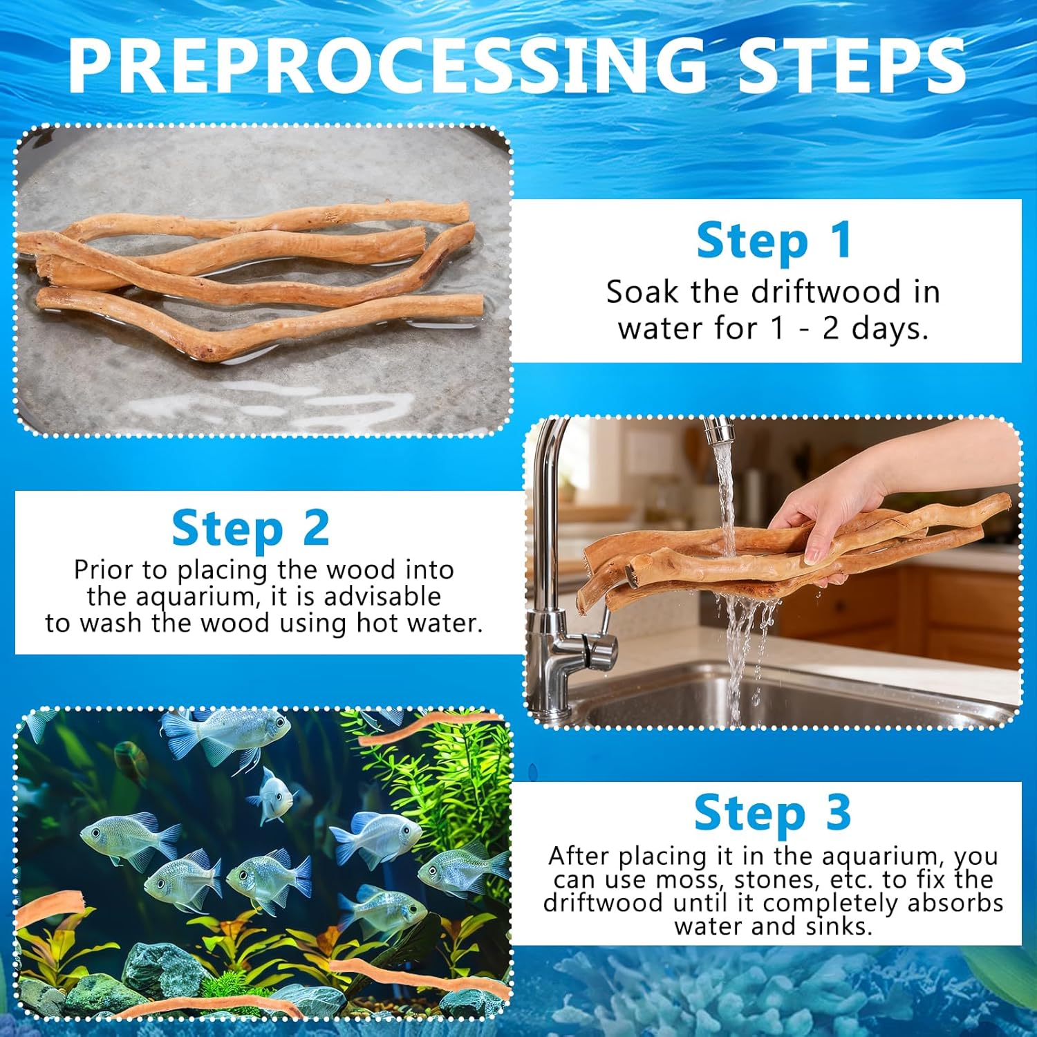 Natural Beauty, Uniqueness: Each piece of driftwood originates from nature, boasting diverse shapes and textures, infusing your aquarium with pure natural beauty and creating a unique underwater landscape. Natural Material, Safe and Reliable: Selected from clean water sources, the wood is stable and will not cause water yellowing, nor will it affect the chemical properties of the water, providing a healthy environment for aquatic life. Buoyancy Treatment, Convenient Use: Driftwood possesses natural buoyancy. Before placing it in the tank, it is recommended to rinse it with hot water and soak it for 1-2 days, or use stones to assist sinking, ensuring cleanliness and stability. Various Sizes, Flexible Applications: Approximately 30-40 cm in length and 0.5-1 cm in diameter, lightweight and easy to assemble, suitable for aquariums of various sizes, and can also be used in paludariums, reptile landscaping, and other scenarios. Function and Aesthetics Combined: Not only does it enhance visual appeal, but it also provides hiding and habitat space for fish, shrimp, and turtles. It can also be tied with aquatic plants or decorative plants, expanding creative possibilities. › See more product details