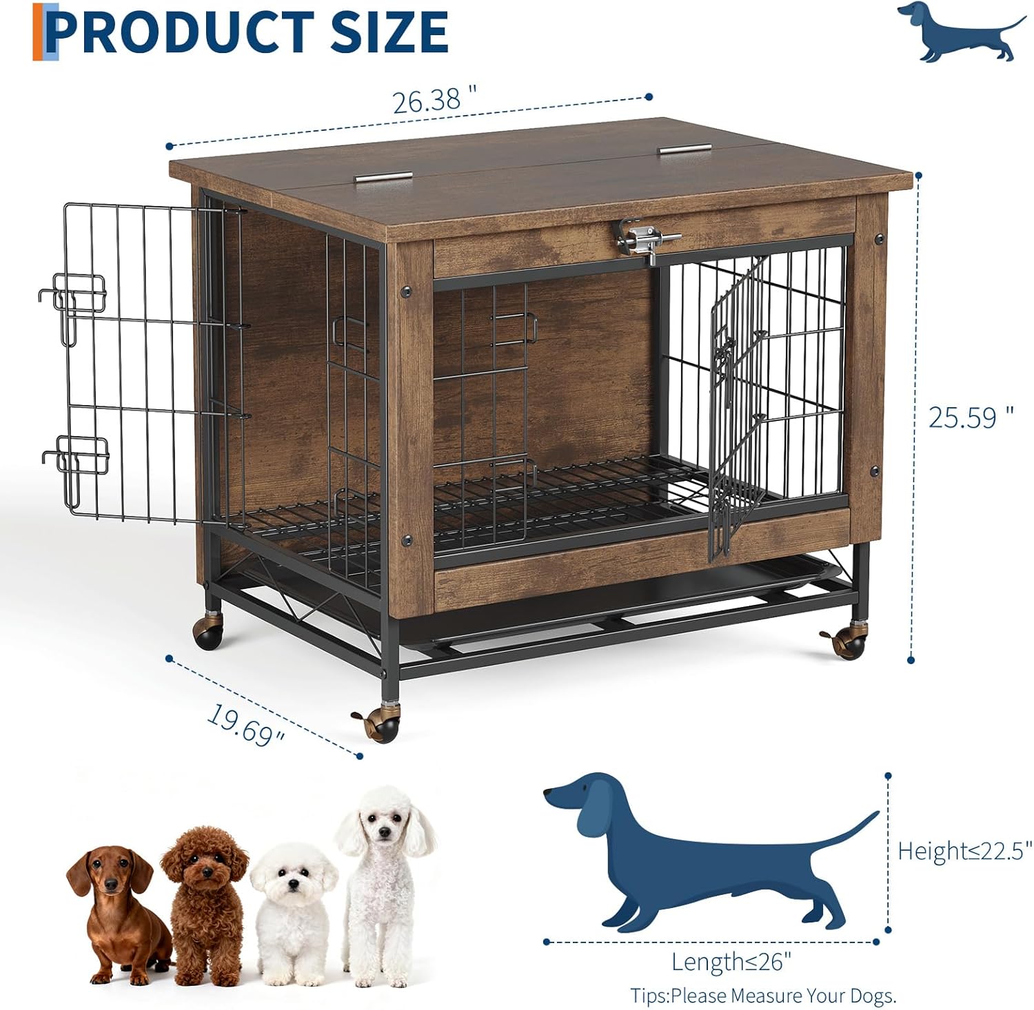 Give your furry companion the perfect blend of freedom, comfort, and safety with this thoughtfully designed pet crate—crafted to fit seamlessly into your daily life while prioritizing your pet’s needs. The unique dual-door structure lets your dog or cat enter and exit with ease, no awkward squeezing or waiting, so they can move freely between their cozy retreat and your family’s activities without disturbance. Whether you live in a compact apartment or a spacious home, this crate adapts effortlessly, never feeling bulky or out of place. Inside, generous internal space lets even larger breeds stretch out, curl up, or rest without feeling confined—turning their crate into a go-to spot for relaxation, not restriction. Keeping things clean is a breeze thanks to the convenient pull-out tray; spills, accidents, or debris are contained, so you can simply slide it out, wipe it down, and get back to enjoying time with your pet instead of tedious cleanup. Beyond function, the crate’s stylish top panel doubles as a practical side table—ideal for holding your morning coffee, a stack of books, or decorative touches, keeping essentials within reach while elevating your home’s look.
