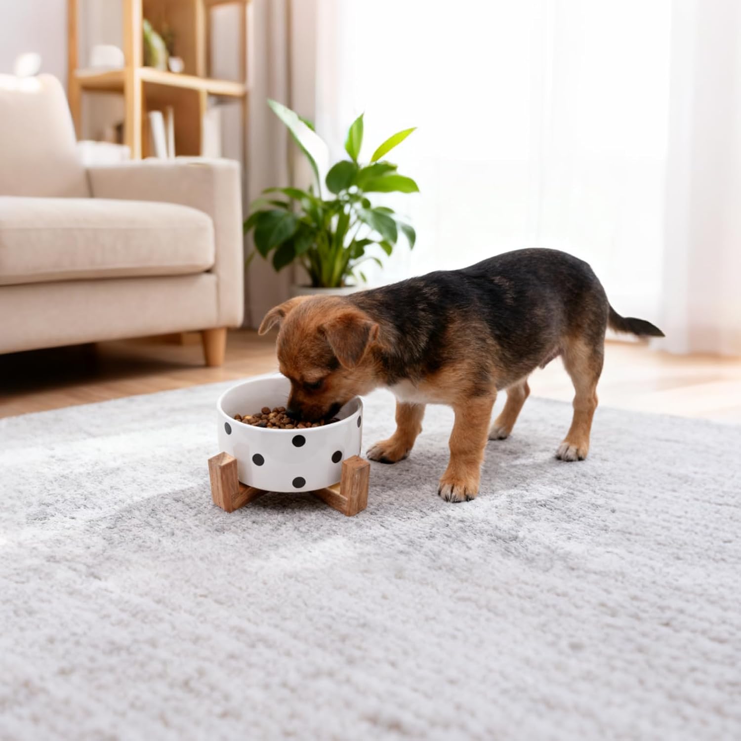 About this item ELEVATED DESIGN: Modern raised pet bowl set featuring ceramic bowls with an elegant Acacia wood stand, perfect for comfortable feeding position for cats and small dogs CAPACITY: Each bowl holds 28.74 ounces (850 ML) or 3.6 cups of food or water, ideal for puppies and cats DURABLE CONSTRUCTION: Set includes 2 stainless steel-lined ceramic bowls that are sturdy and easy to clean PRACTICAL DIMENSIONS: Measures 15 inches long by 9 inches wide by 0.75 inches high, providing a stable feeding station VERSATILE USE: Suitable for both indoor and outdoor use, compatible with dry food and water, featuring a special design to prevent ant intrusion › See more product details