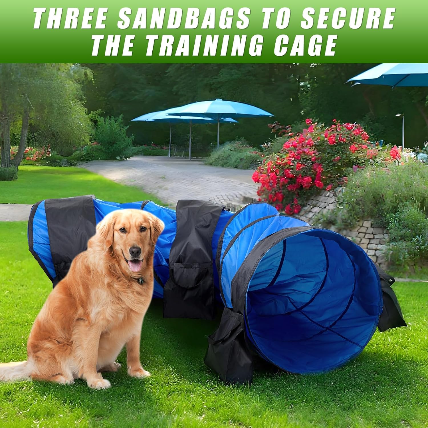Features: Easy To Use And Store: Our dog agility training equipment is lightweight and durable, and can be easily stored after training Easy Play Fun: Our dog training tunnel makes creating a dog backyard play structure quick and easy Specifications: Material: waterproof 600D Oxford fabric Color: blue Size: 28 in x 10ft Package includes: 1 x Training tunnel set 3 x Circular sandbags Notes: Manual measurement, please allow slight errors on size. The color may exist a slight difference due to different screen displays.