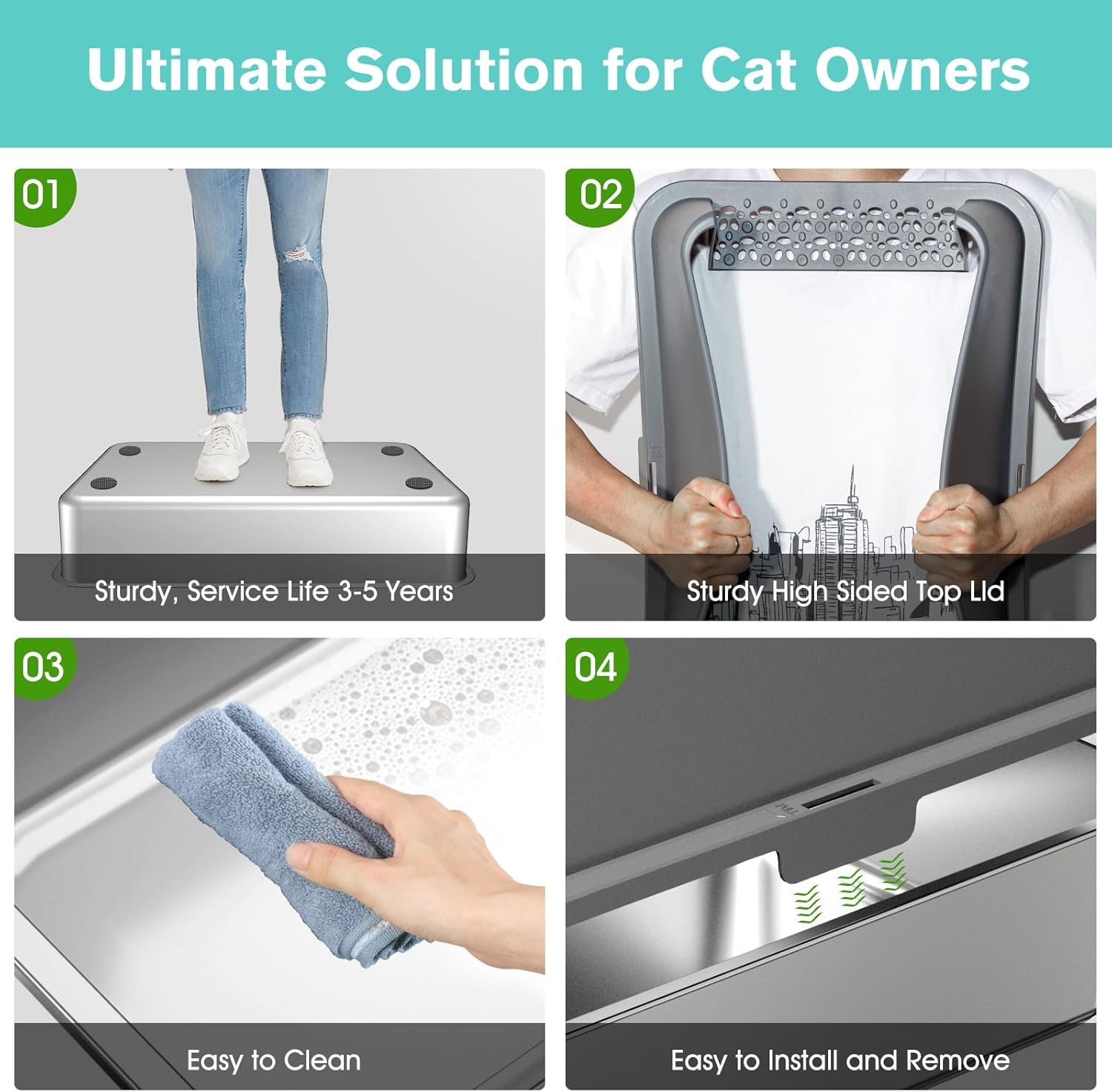 - Style: stainless steel cat litter box, metal litter box, high sides litter box for big cats, extra large litter box for multi-cats, steel litter box