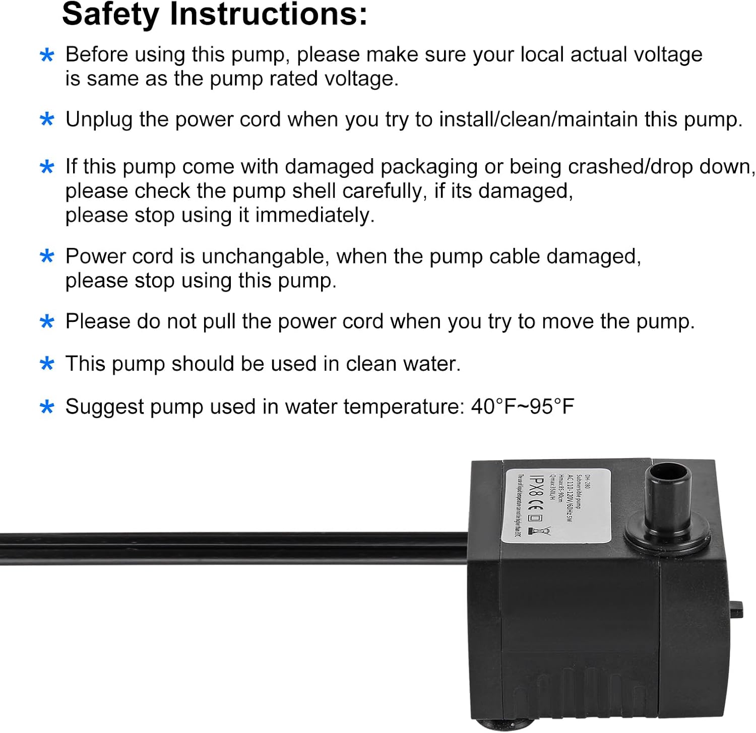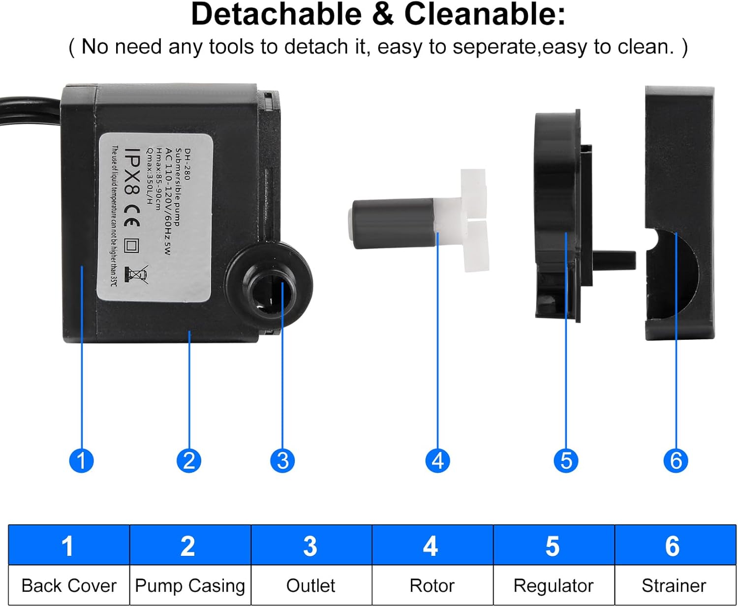 5W 95GPH Mini Submersible Water Pump, Small Fountain Pump for Pond, Aquariums, Fish Tank, Tabletop Fountain, Pet Fountain, Indoor or Outdoor Fountain