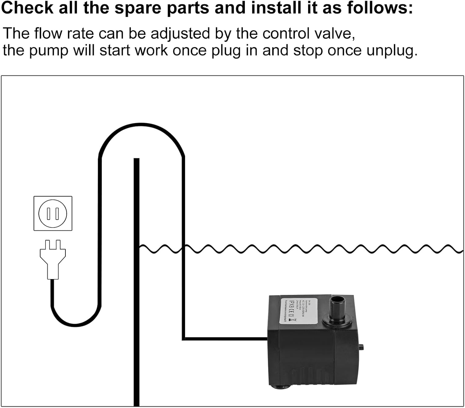 - Included Components: 95GPH 5W Mini Submersible Water Pump