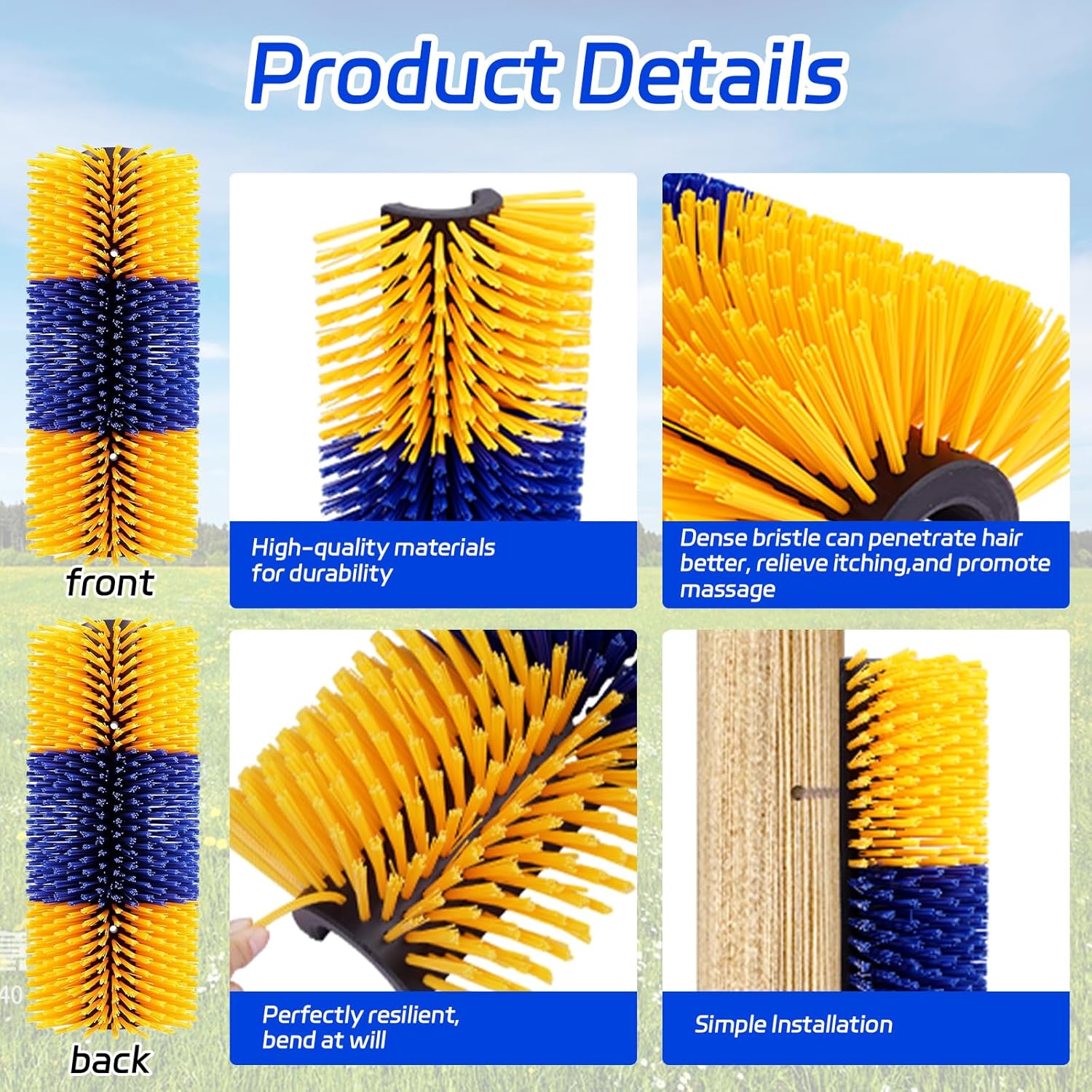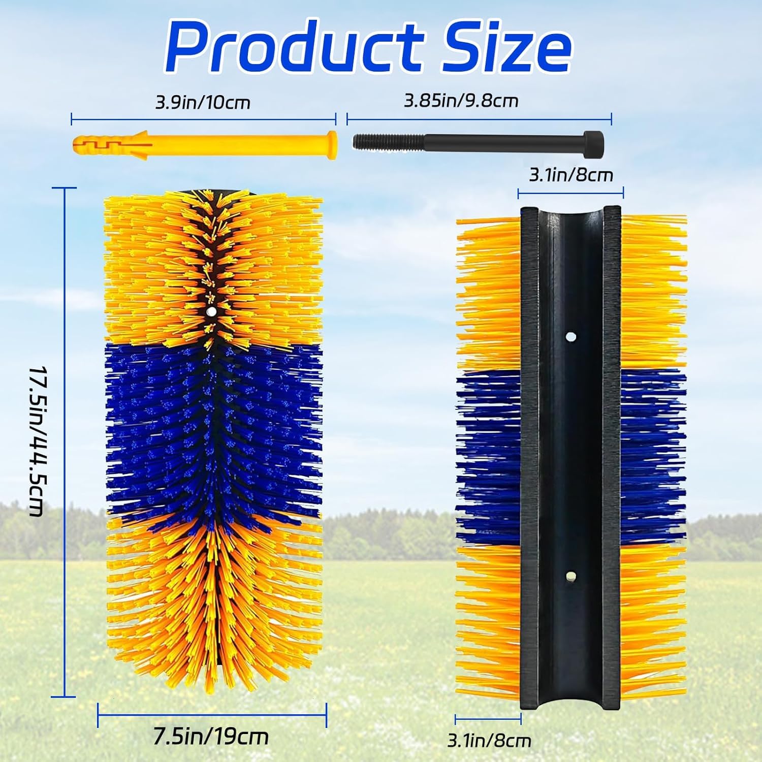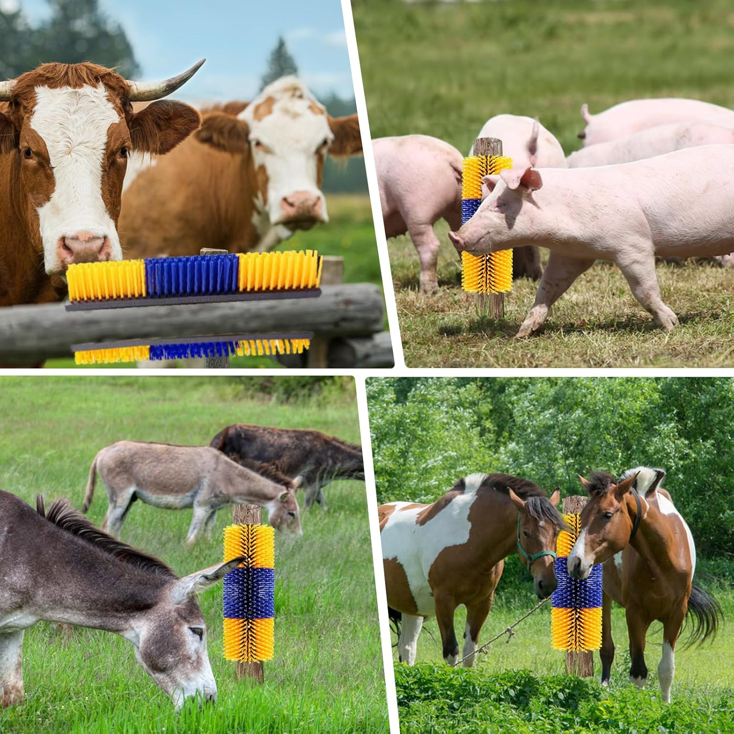About this item VERSATILE: 2PCS Livestock Scratch Brushes perfect for relieving itching on the back of horses, cattle, sheep, and pigs. FULL MASSAGE: The brushes provide a full massage experience, promoting blood circulation and relaxation. DURABLE CONSTRUCTION: Made with high-quality materials for long-lasting use in the barn or stable. EASY TO USE: Designed for easy handling and maneuvering to reach all areas of the animal's body. DIMENSIONS: Each brush measures approximately 18 inches (45.7 cm) in length for optimal coverage. › See more product details