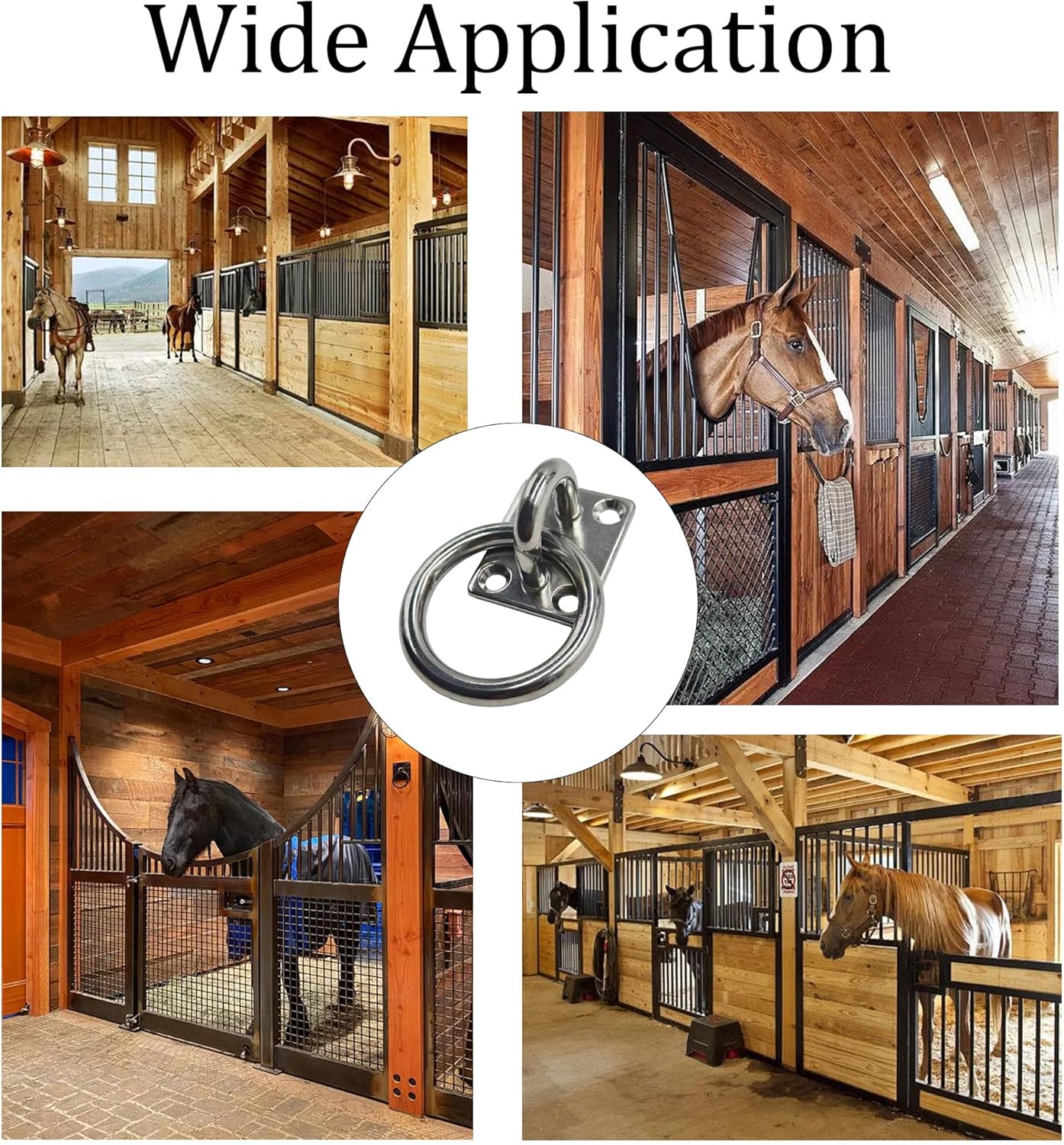 Product Description: Features: Stable Management Essential: Wall mount cross tie rings create secure attachment points for horse handling. Includes screws for quick barn installation. Versatile Mounting Options: Block tie design works on wood posts, concrete walls, or metal surfaces. Perfect for stalls, wash areas, and tack rooms. Professional Grade Hardware: Standard sizing fits common equestrian equipment like snaps and lead ropes. Suitable for boarding facilities and private barns. Multiple Farm Uses: Beyond horses, these hitching rings accommodate cattle, goats, and other livestock. Ideal for mixed agricultural operations. Product Specifications: Material: Stainless Steel Color: Silver Size: Base: 50m×40mm/ 1.97inch×1.57inch(L*W) Ring Thickness: 8mm/0.32inch Inner Diameter: 45mm/1.77inch Package contains: 2pcs M8*60 cross tie ring with 8pcs screws and 8pcs expansion tubes. NOTE: Please allow 1-2mm difference between actual and manual due to manual measurement. The color you actually see may be slightly different due to different displays.